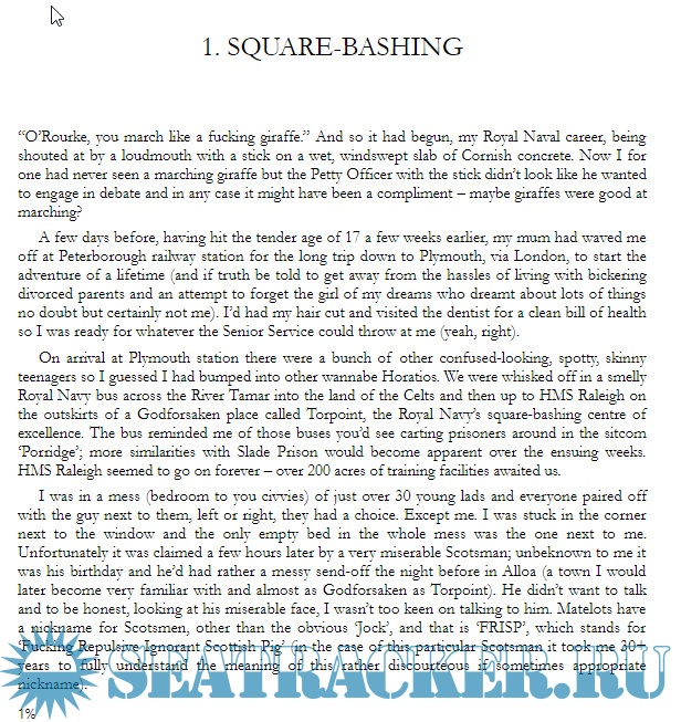 Year: 2022 Language: english Author: Rocky O’Rourke Genre: Memoir Format: EPUB Quality: eBook Pages count: 268 Description: Ever wondered what it’s really like in the Royal Navy? Then you’ll love this hilarious, entertaining and very personal portrayal of the author’s 1980s’ experiences. The author – known as ‘Rocky’ on his first seagoing ship – joined the Royal Navy aged 17 in September 1982, shortly after the Falklands Conflict, and served until 1990 when he left the Senior Service to start a family. A Pair of Steaming Bats captures the author’s training period, first taste of life at sea on a frigate and subsequent drafts including further life at sea on board an aircraft carrier. His experiences both on board and ashore are recounted as he sails from Plymouth and Portsmouth to various corners of the globe. From Mombasa’s seedy backstreets and the red-light districts of Hamburg and Amsterdam through to the glorious sandy beaches of the Seychelles and the Bahamas - there is coarseness, sex and drunken shenanigans. The people he encountered – from the poor beggars on the streets of Karachi to the millionaires of the Gulf states – are still fresh in his memory today. This witty, behind-the-scenes account of life in the Royal Navy combined with the author’s stories of his Irish Catholic roots and his upbringing in a Peterborough pub will have you laughing, reminiscing and reflecting on for a long time after you read the final page. You’ll find everything in this compelling, no-holds-barred memoir.
