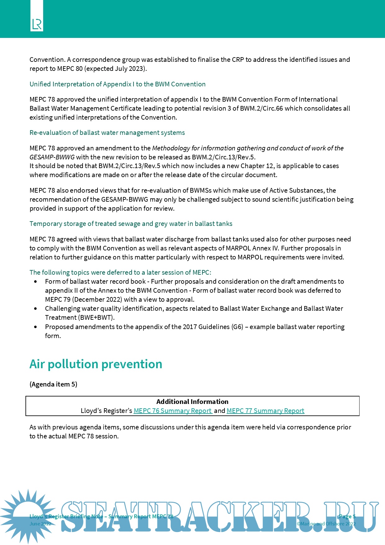 IMO Marine Environment Protection Committee - Seventy-Eighth session (MEPC 78) - Summary Report