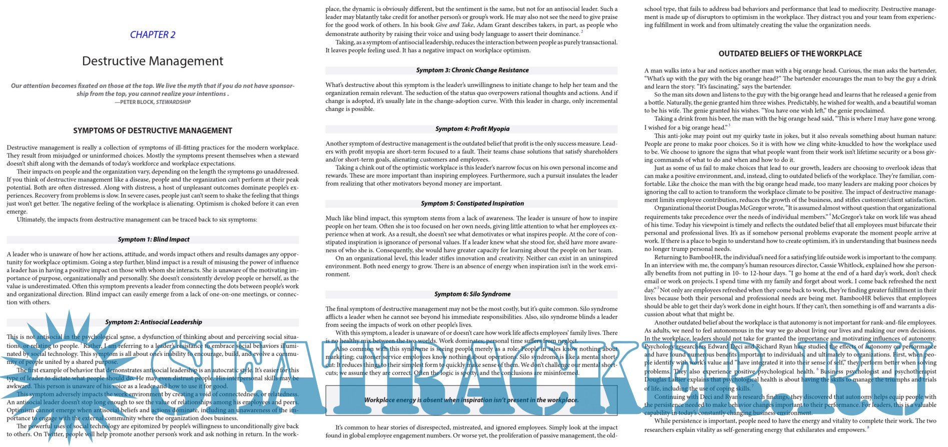 Description: The way your workplace “feels” has a tremendous influence on people’s experience, morale, and performance. People thrive in a climate where they feel valued, where they know their contributions are meaningful, and where their core values are closely aligned with the values and character of their employer. Where they don’t feel valued, meaningful, and aligned . . . they just do their jobs. And today, in a world where opportunities to stand out are everywhere and the next killer idea can come from anywhere, “just doing our jobs” isn’t good enough.