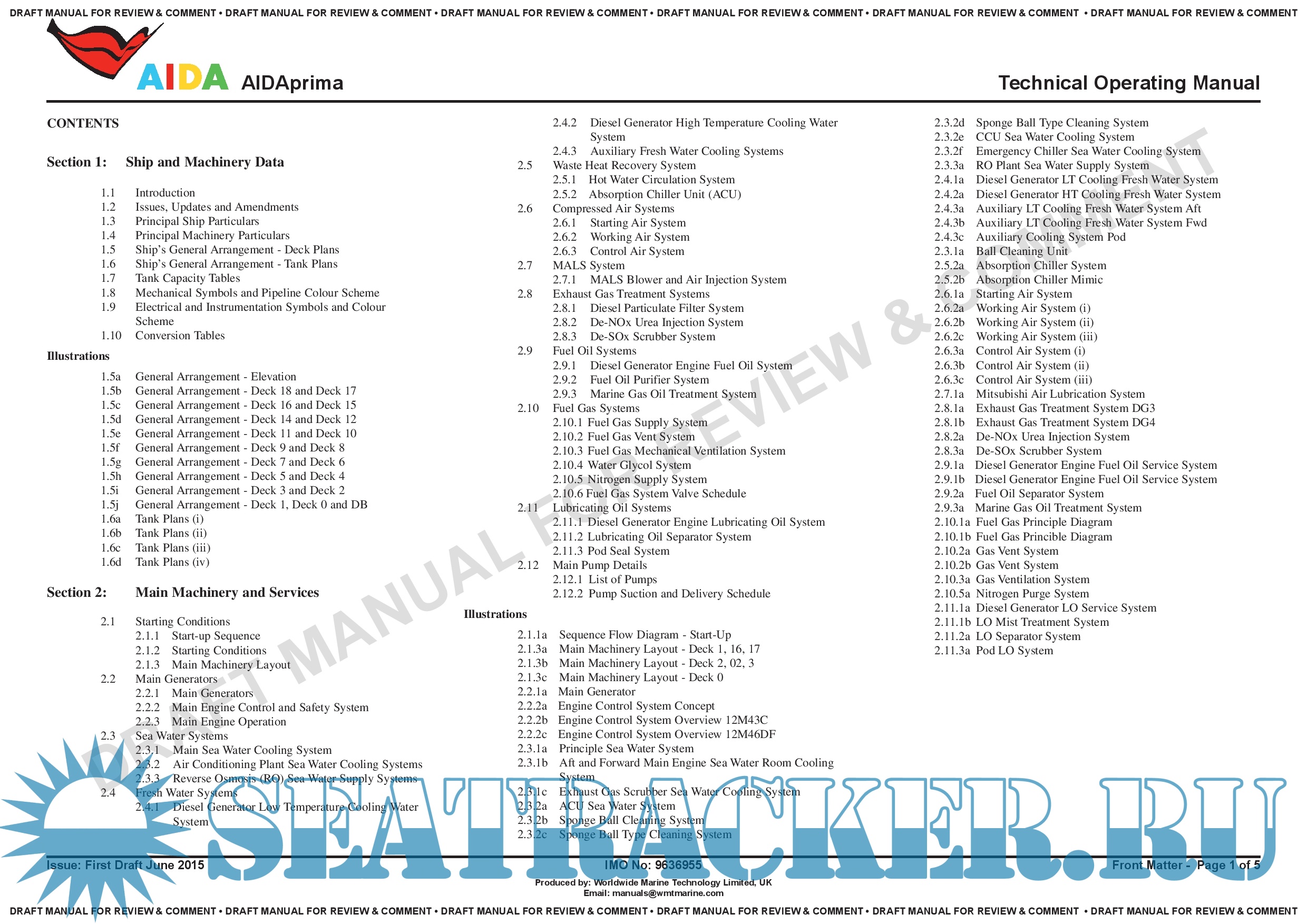 AIDAPRIMA - Passenger (Cruise) Ship - IMO 9636955 - Technical Operating Manual - Section 1 - WMT…