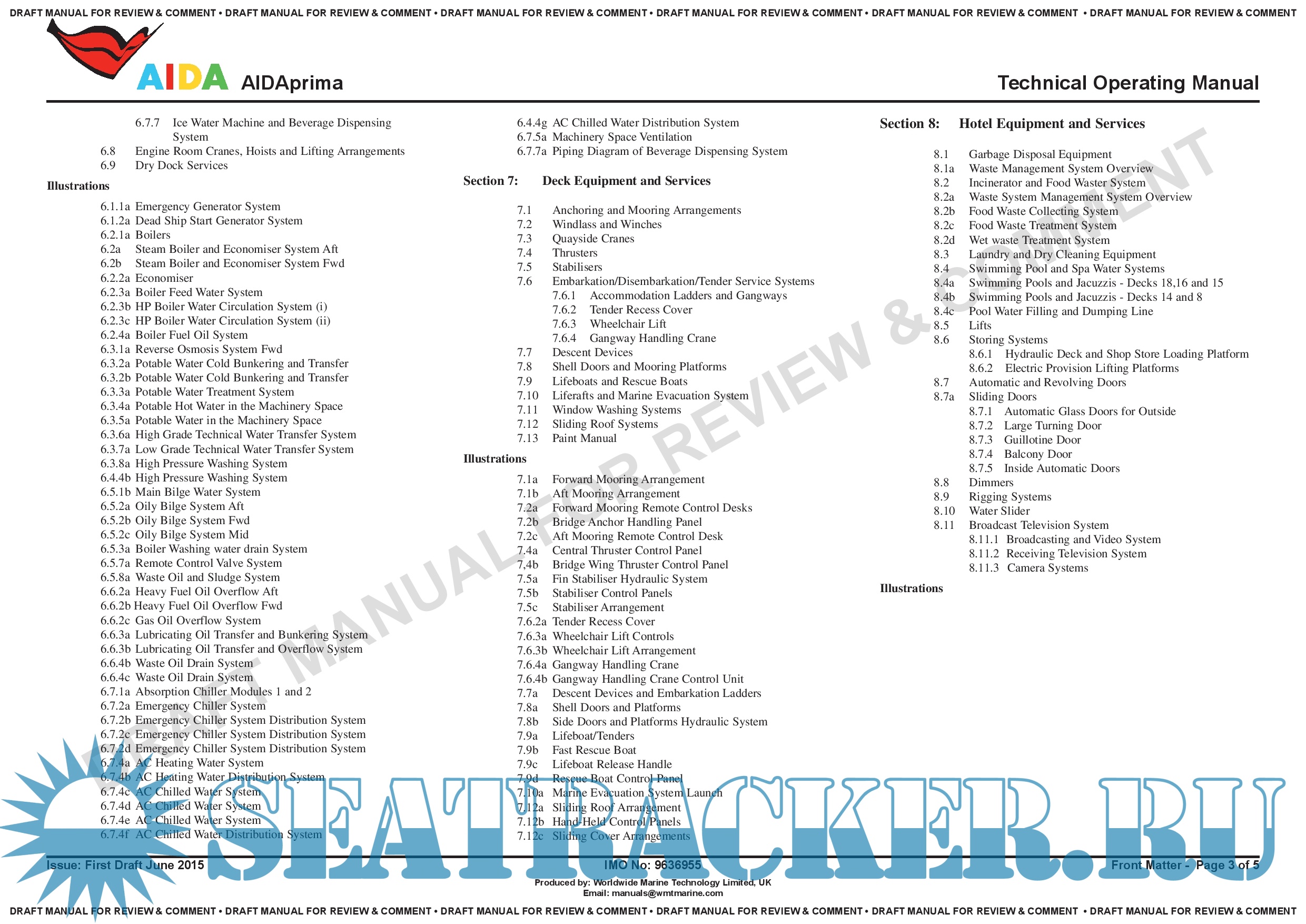 AIDAPRIMA - Passenger (Cruise) Ship - IMO 9636955 - Technical Operating Manual - INDEX