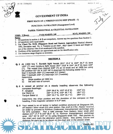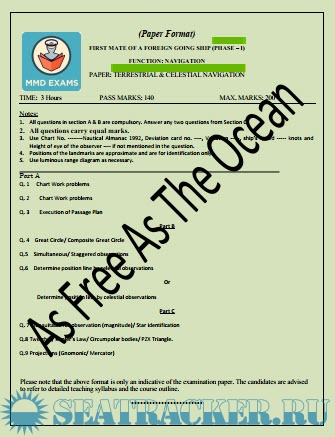Question Paper Set for Terrestrial and Celestial Navigation (August 2022) for Phase I (Chief Mate F.G.) Mercantile Marine Department (MMD), India Examinations