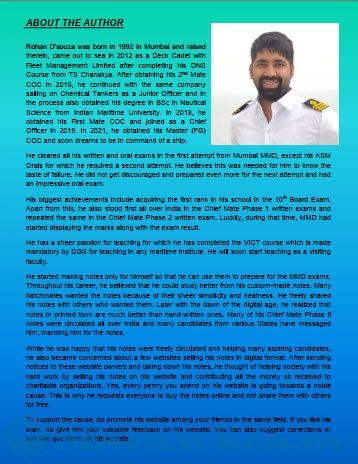 Year: 2022 Language: english Author: Rohan D'souza Publisher: The Nautical Guy'D Format: PDF Quality: eBook Pages count: 349 Description: Advanced Shipboard Management (ASM) Notes for Oral Exams of M.M.D.(Mercantile Marine Department) - D.G. Shipping, India Additional info: From the Author: In case any of you feel the notes are good and worth it, can get in touch with me if you wish to contribute to charity.