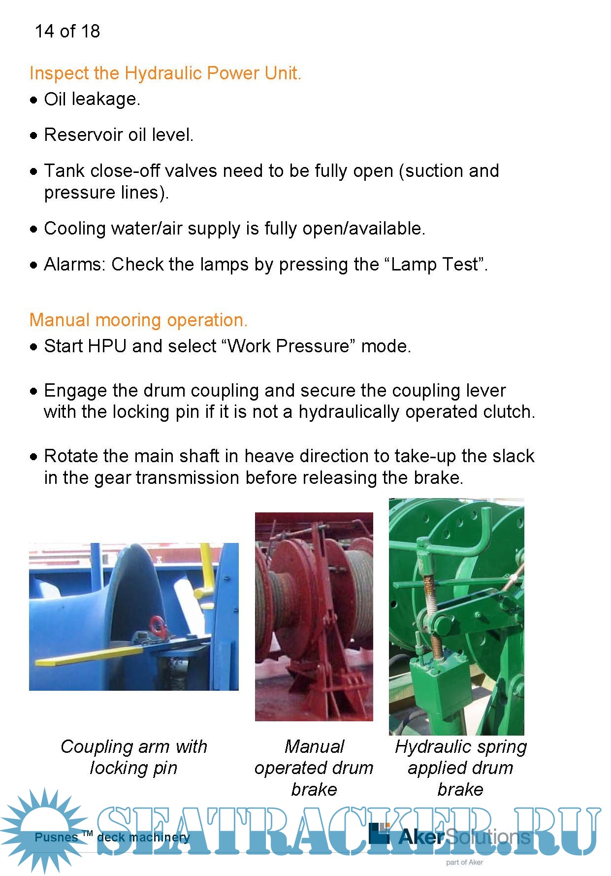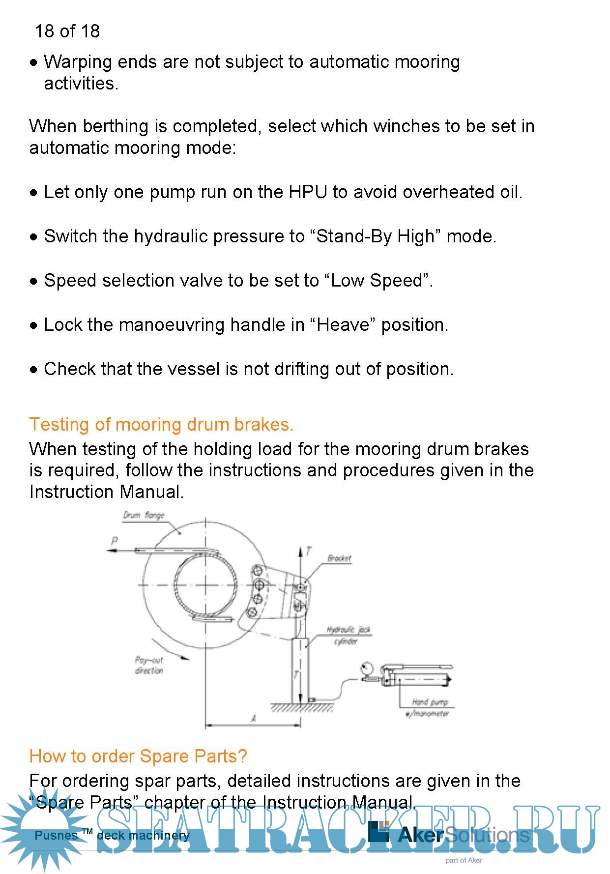 Description: The intention with this Quick Guide for Pusnes TM deck machinery is to help prevent equipment damage caused by incorrect operation of the ships mooring winches. It also contains useful reminders about preparations and basic maintenance requirements.