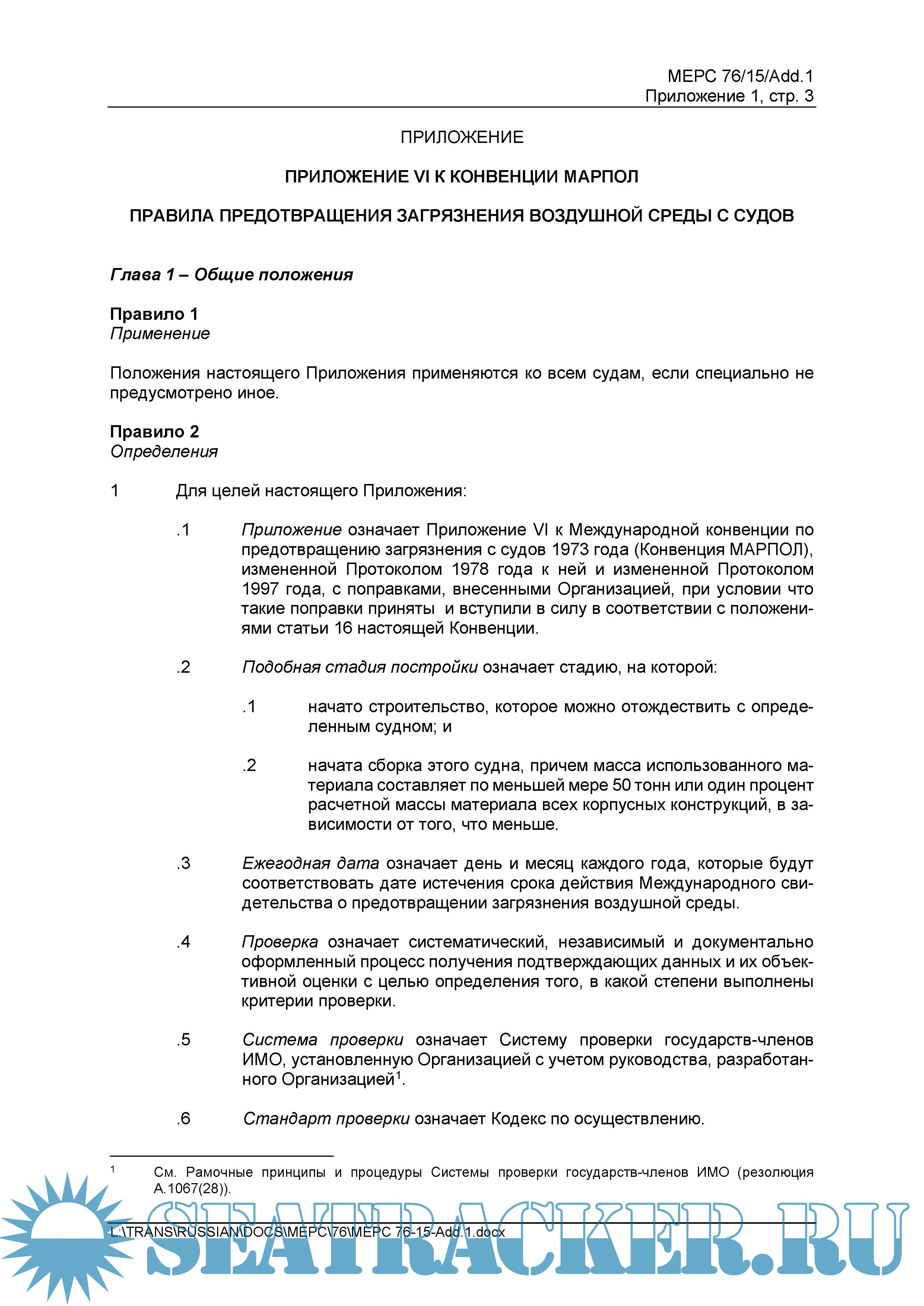 MEPC. 328(76) - Пересмотренное Приложение VI к Конвенции МАРПОЛ 2021 года / Правила предотвращения загрязнения воздушной среды с судов