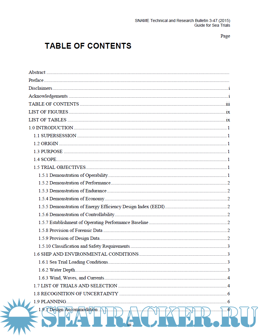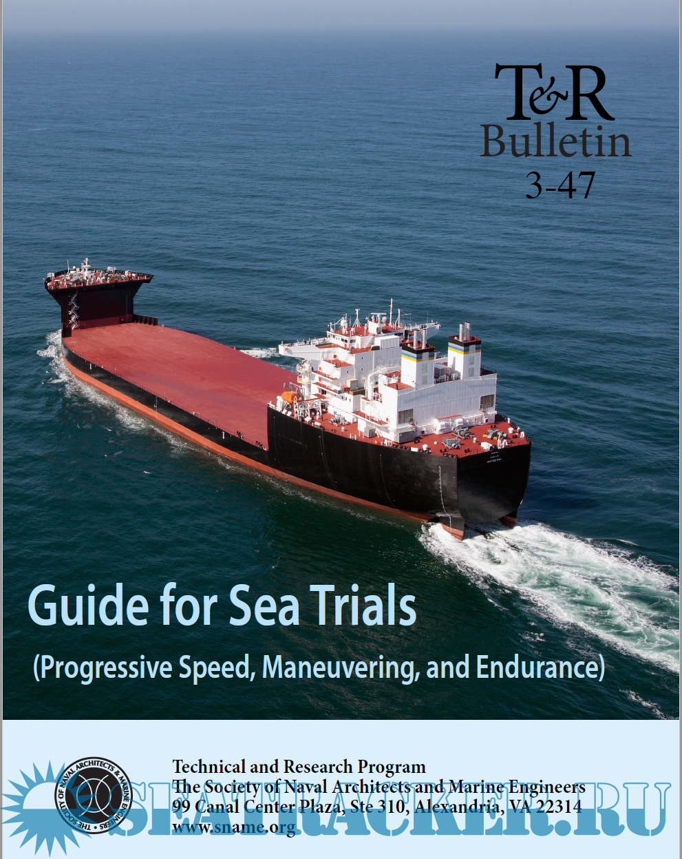 Description: This guide covers progressive speed, maneuvering, and endurance sea trials of self-propelled surface ships displacing 300 tonnes or more, powered by hydrocarbon fuels such as petroleum, natural gas or bio fuel, and driven by diesel or Otto cycle engines, gas turbine, or electric motors. References are made to applicable international standards. This Bulletin does not cover dock trials, tests, or demonstrations that can be conducted dockside, which are covered in SNAME T&R Bulletin 3-39, Guide for Shop and Installation Tests.