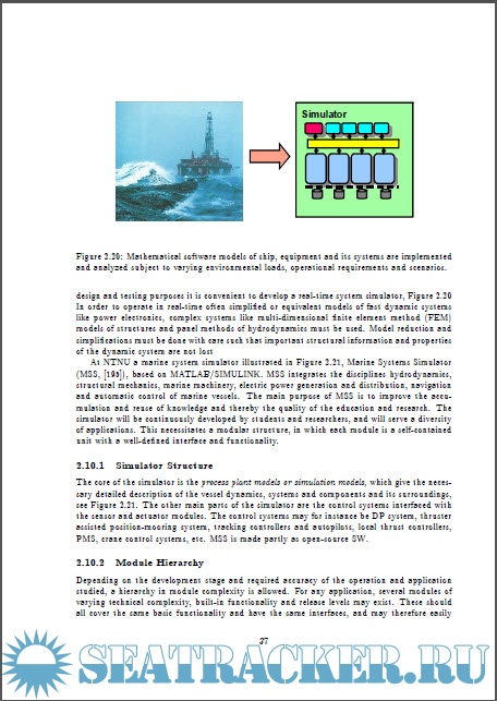 Year: 2013 Language: english Author: Asgeir J. Sørensen Publisher: Department of Marine Technology. Norwegian University of Science and Technology ISBN: - Format: PDF Pages count: 537 Description: Marine Cybernetics is a multidisciplinary education and research program offered by the Department of Engineering Cybernetics and the Department of Marine Technology, the Norwegian University of Science and Technology (NTNU). The material presented is intended for use as Lecture notes in the course entitled TMR4240 Marine Control Systems and partly in TMR4243 Marine Control Systems II. The courses are given on graduate level for MSc degree for specialization in Marine Cybernetics. It is believed that these courses in addition to the course TTK4190 Guidance and Control will give the students good insight into the design of marine control systems. Besides several dedicated courses on dynamics, hydrodynamics, machinery systems, nonlinear control, stochastic control, instrumentation systems and computer science are given. It is assumed that the students already have acquired themselves basic background in automatic control theory and mathematical modelling of mechanical systems. This is the third version of the lecture notes and contains minor updates from the previous one issued in 2011. The students are greatly acknowledged for comments providing continuously improvements. Acknowledgements Several of the chapters are results from joint research between the author and colleagues from the Norwegian University of Science and Technology (NTNU), former colleges in ABB Marine and new partners in the industry. In particular, the author is grateful for years of joint work with Professor Thor I. Fossen, Department of Engineering Cybernetics, NTNU. In the period 2005-2009 during my leave from university managing the NTNU spin-off company Marine Cybernetics, Dr. Tristan Perez, Dr. Trong Dong Nguyen and Dr. Morten Breivik were acting as stand-in for me running the course Marine Control Systems. All of you did a great job improving the course and the teaching material.