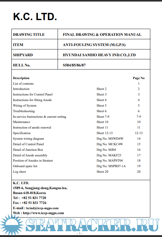 Anti-fouling System ( M.G.P.S) for 3,600 TEU Container Carrier