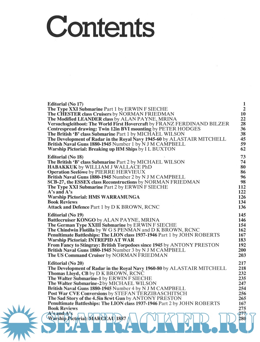 Year: 1981 Language: english Author: Roberts J. Genre: Periodical (magazine) Publisher: Conway Maritime Press ISBN: 0870219804 Format: PDF Quality: Scanned pages Pages count: 296 Description: Devoted to the design, development and service history of the world's combat ships, incl Type XXI, XXIII and Walter Submarines, US Chester Class Cruisers, "B" Class Submarines, Japanese Kongo Battlecruiser, "Lion" Class battleship designs and many others, 288 pgs, illus, diagrams.
