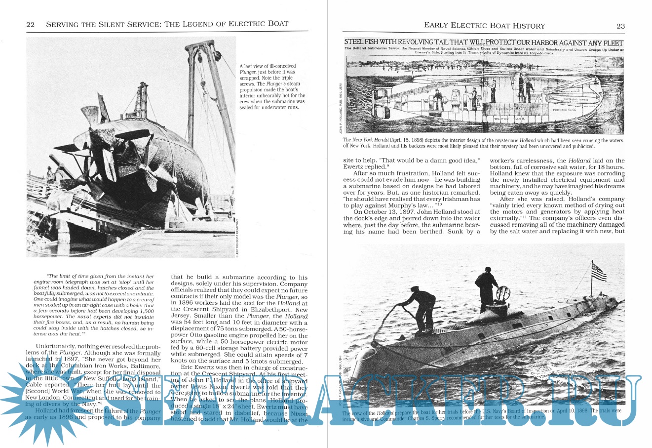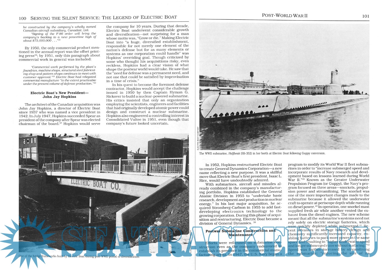 Description: The Legend of Electric Boat, by noted industrial historian and best-selling author Jeffrey L. Rodengen, is a comprehensive look at the origins and evolution of the Electric Boat Company, division of General Dynamics, and the world's foremost designer and builder of nuclear submarines. Rich with submarine history, it is the story of a fledgling company that began by fighting against a lack of technology and support, and yet persevered to help win two world wars and sustain America's efforts to win the ongoing global battle for freedom. Today, Electric Boat is aggressively plotting a course that will enable it to survive the current downsizing of the American military by the application of advanced technologies, including innovative design strategies using virtual reality.