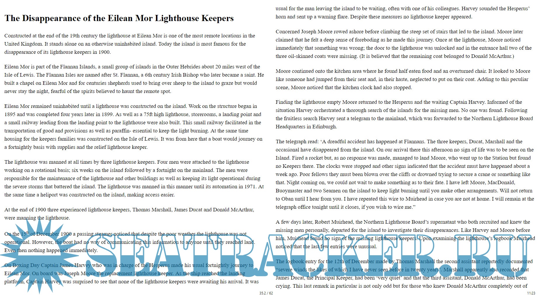 The Disappearance of the Eilean Mor Lighthouse Keepers