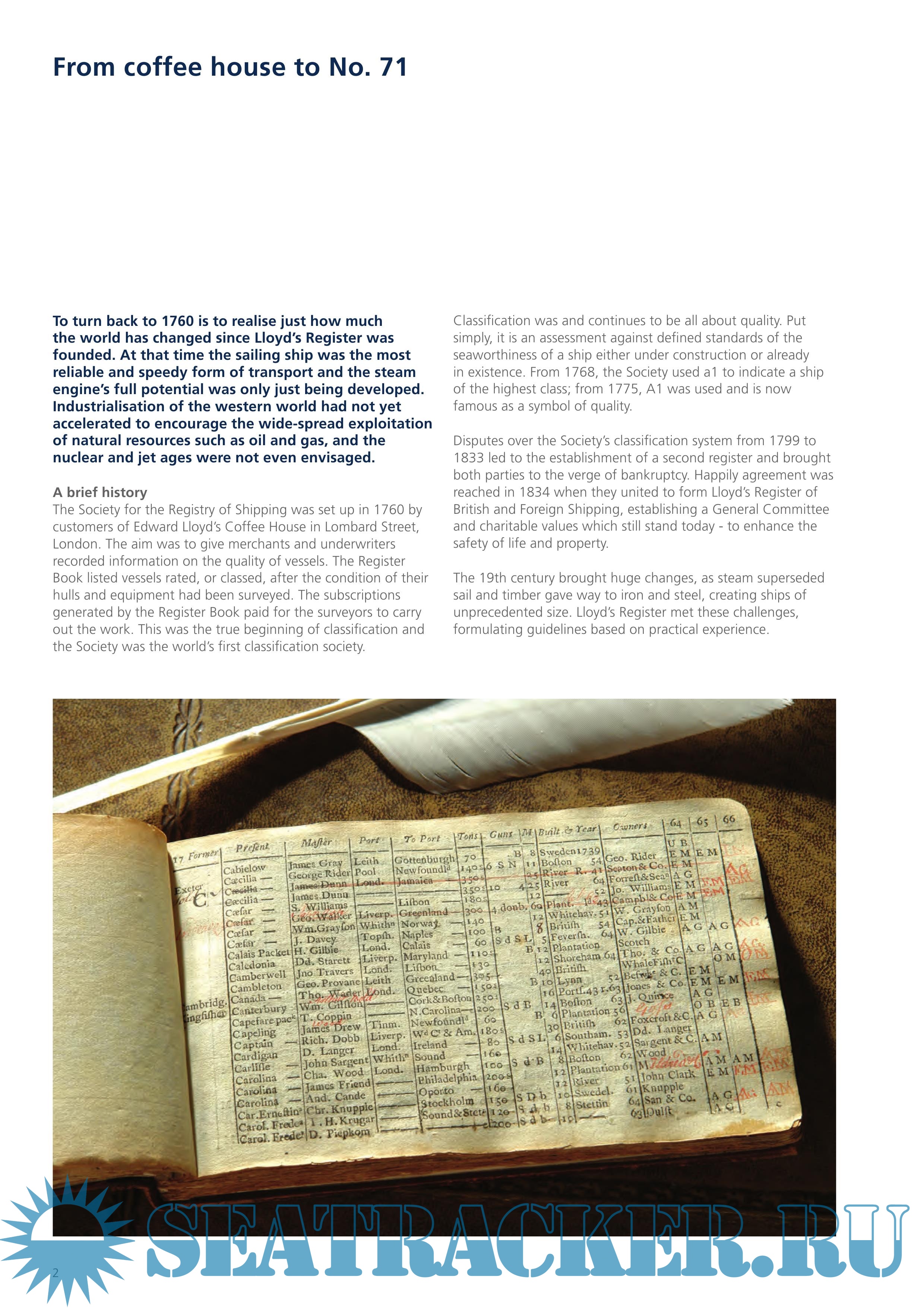 We start with its origin as a classification society in a London coffee house in 1760. As the organisation grew, spreading around the world and into new business sectors, its premises in London followed the varying fortunes of the organisation.