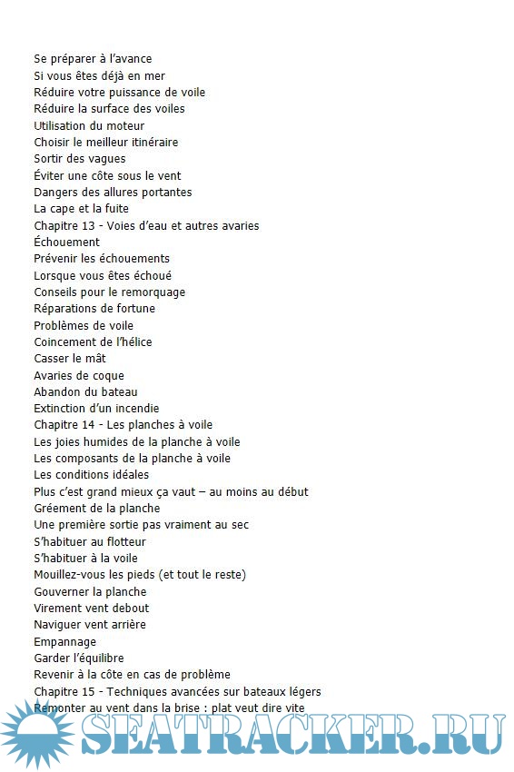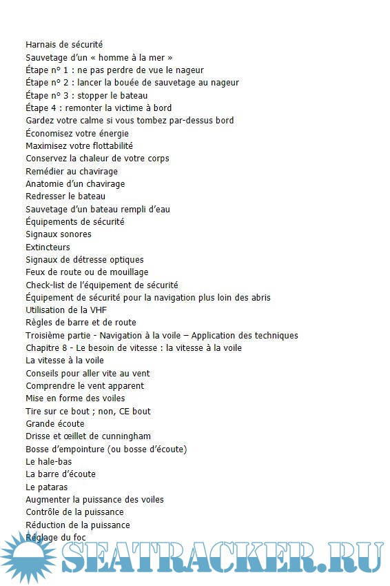 • L'équipement et les vêtements à porter à bord, l'entretien du bateau.