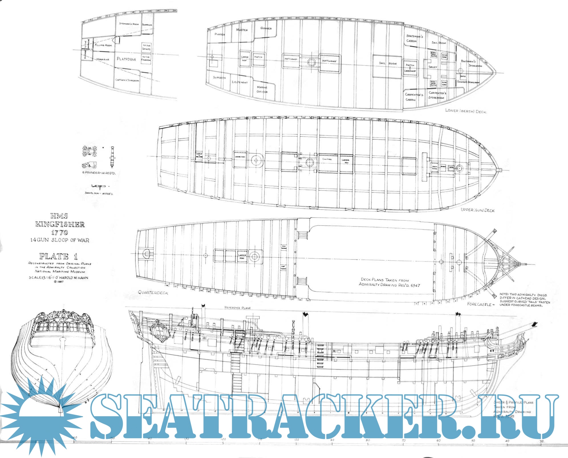 14-пушечный английский шлюп HMS Kingfishe (чертежи)