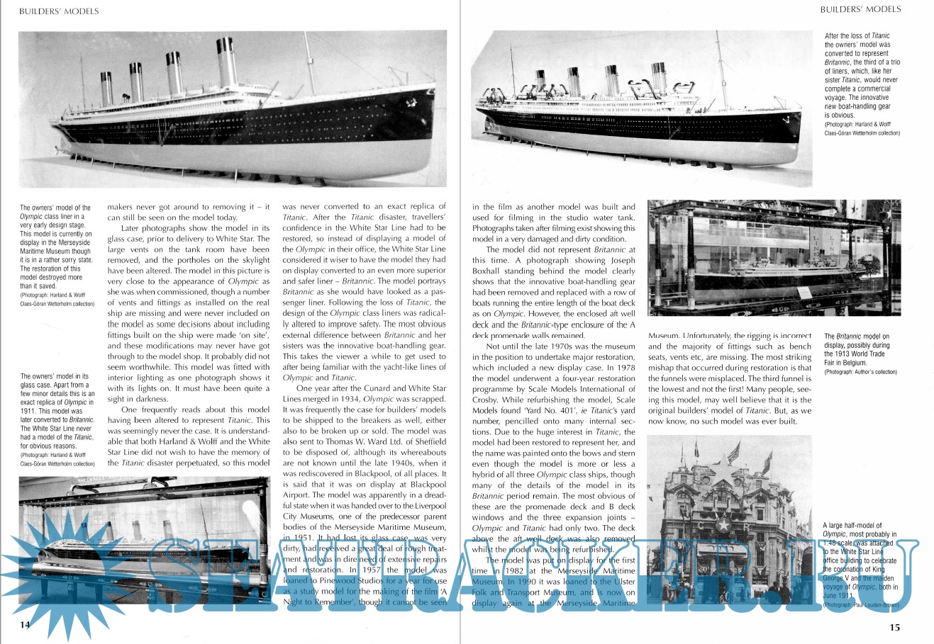 Year: 2005 Language: english Author: Peter Davis-Garner Genre: Manual Publisher: Chatman Publishing Format: PDF Quality: Scanned pages Pages count: 178 Description: RMS Titanic has had more written about her than any other ship, but surprisingly there is little information directed at the modelmaker. This superb book contains all the information needed to build a highly accurate model, down to the tiniest details of the hull's rivets. The work is based on the author's remarkable 18-foot model, built to 1/48 scale, and specially commissioned for a traveling exhibition in North America. The book contains a mass of practical information on how to construct every part of the great liner and is equally applicable to a small, static, bread-and-butter display model as to a large working version. Profusely illustrated with close-up photographs, detailed drawings, and a large collection of photographs of the prototype itself, the book also contains a complete set of plans considered to be the most accurate yet drawn. With this mix of practical information, rare photographs, and highly detailed drawings the book will appeal to all Titanic enthusiasts as well as to ship modelers.
