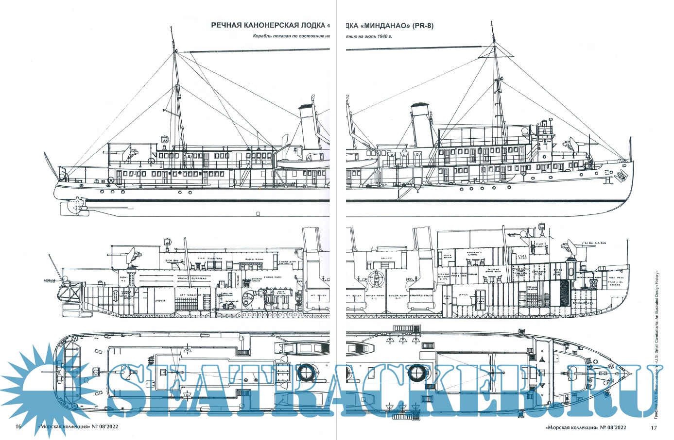 По всем типам специализированных речных канонерок (да-да, по всем четырем) Андрей Глухов сделал оригинальные схемы. Им же выполнены цветные боковики.