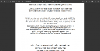 Year: 2004 Language: english Author: HoangNam Genre: Reference book Format: PDF Quality: eBook Pages count: 41 Description: A COLLECTION OF THE MOST COMMON DEFICIENCIES FOUND DURING PORT STATE CONTROL INSPECTIONS. Each card, which includes some photographic material, contains a short description ofthe relevant equipment and applicable rules and regulations, together with some suggested tests and checks which, in the VR view could, if regularly applied, help maintain the efficiency and effectiveness of the equipment