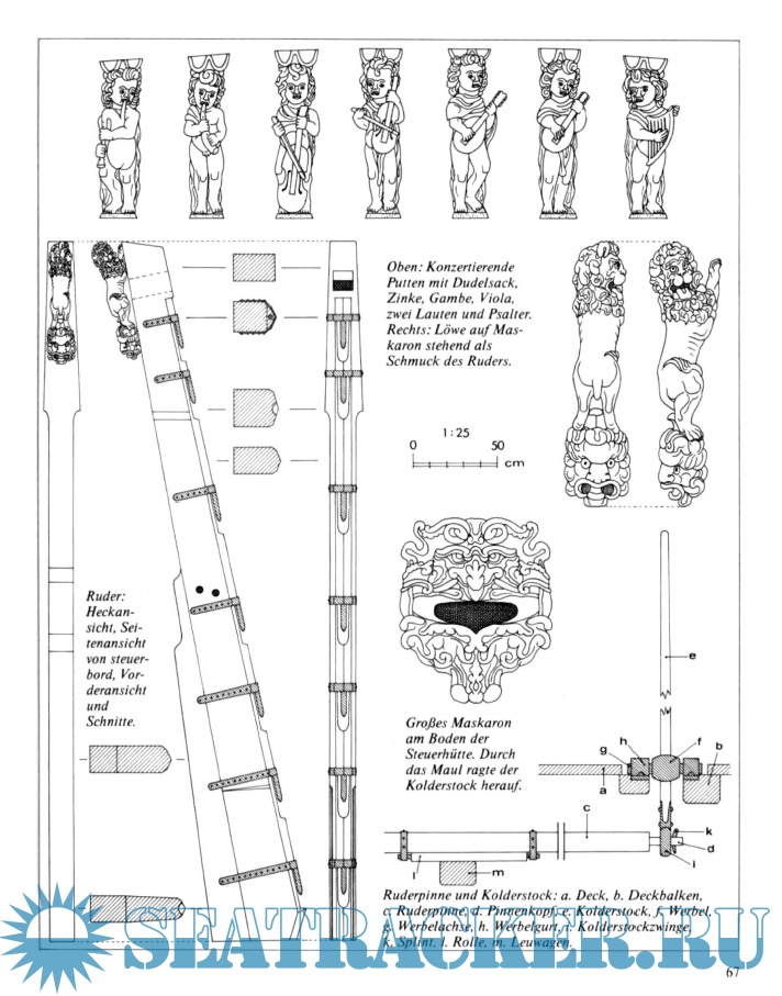 Einen besonderen Schwerpunkt bildet die ausführliche Beschreibung der zahlreichen Figuren und Allegorien, die das Schiff geschmückt haben.
