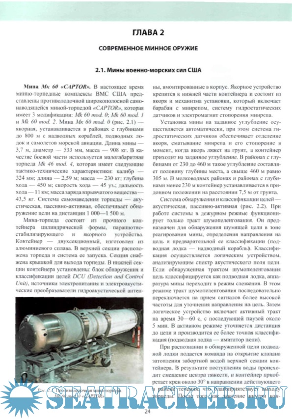 Год выпуска: 2008 Язык: русский Автор: Илларионов Г.Ю., Сиденко К.С., Сидоренков В.В. Жанр: Техническая литература Издательство: Янтарный сказ Формат: PDF Качество: Отсканированные страницы Количество страниц: 119 Описание: В монографии, написанной по материалам открытой зарубежной научно-технической информации, представлены обобщенные сведения по противоминным необитаемым подводным аппаратам (роботам), привелены данные по их конструкции, оснащению и тактнке применения при ведении противоминных действий. Отдельно приведены образцы противоминных необитаемых подводных аппаратов, используемых с надводных кораблей и подводных лодок. В книге содержатся справочные данные об образцах мин, систематизированные по государствам-производителям, годам выпуска и принципам действия аппаратуры, а также математический аппарат по оценке эффективности минных заграждений. Монография предназначена для широкого круга читателей и для специалистов в области морских технологий. Представленные материалы могут быть использованы в военно-морских учебных заведениях и на военных кафедрах вузов страны.