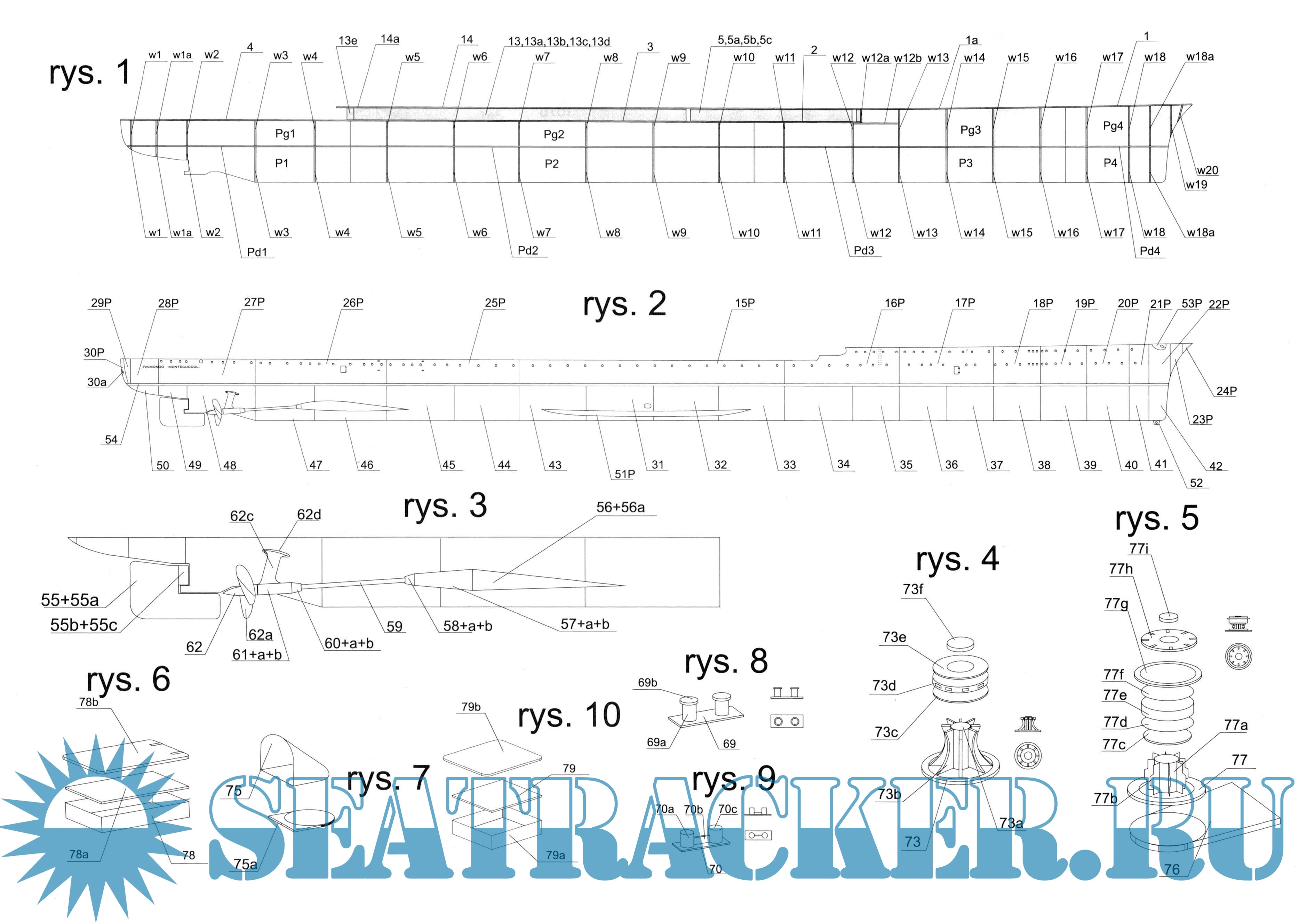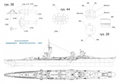 Описание: 29листов цветных выкроек и инструкций по изготовления модели из бумаги итальянского лёгкого крейсера " Raimondo Montecuccoli" в масштабе 1:200 по состоянию на 1931 год