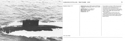 Description: Jane's Warsaw Pact Warships Handbook. Edited by John E. Moore. Sections: Submarines (pp.22-90),Aircraft carriers, Battle cruisers, Helicopter cruisers, Cruisers, Destroyers, Frigates, Corvettes, Fast attack craft, Large patrol craft, Amphibiousassault craft.