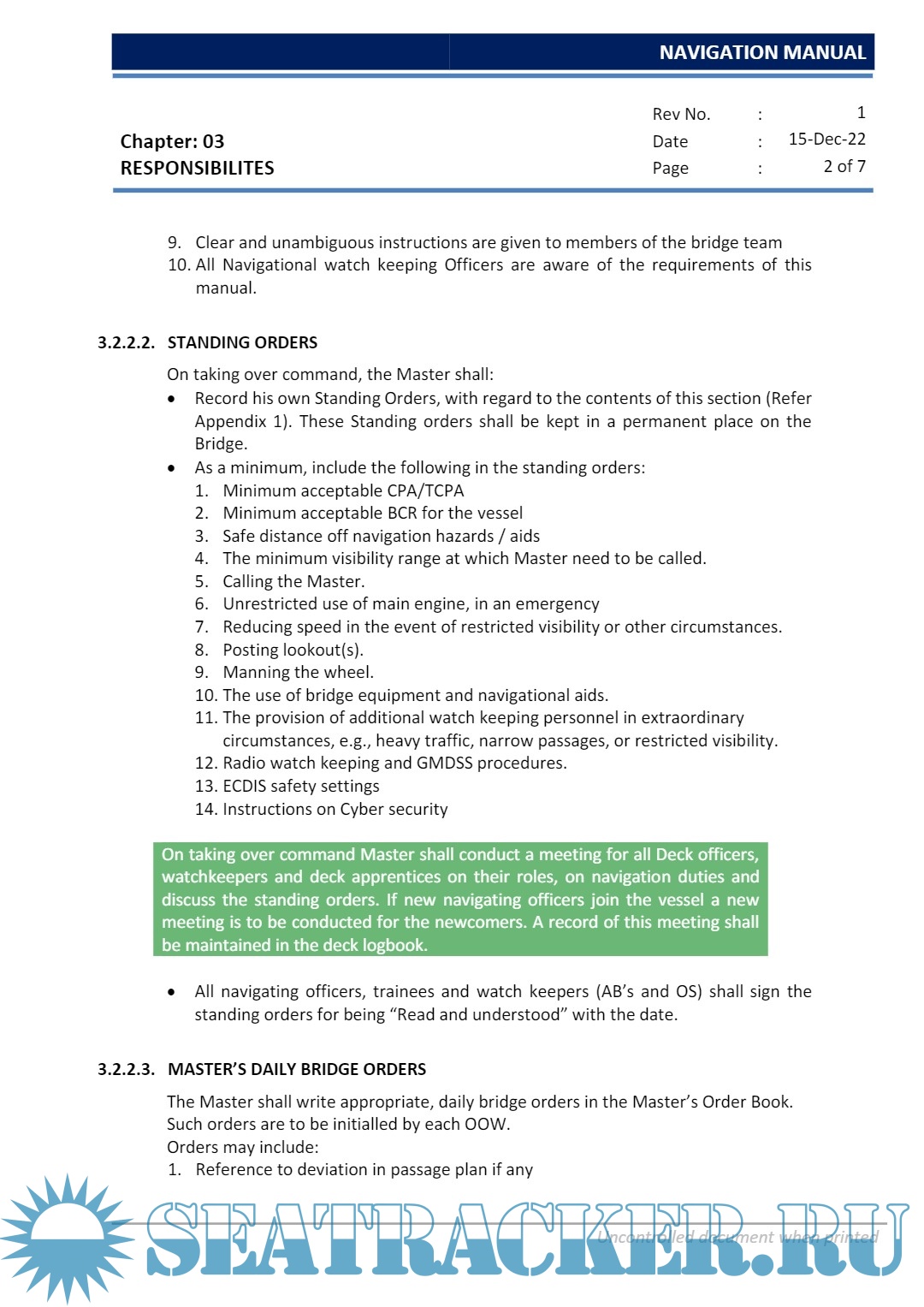 Description: This Manual is issued to assist all personnel involved in the navigation of ships to carry out their duties in a safe and efficient manner.