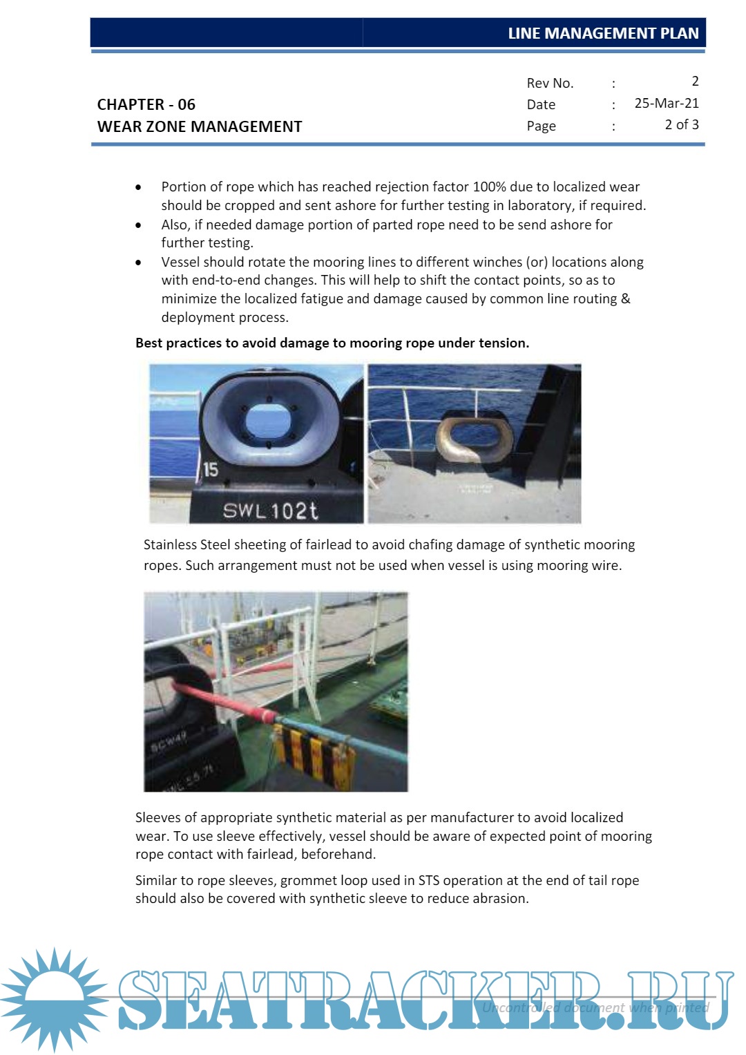 Description: Regulation/guidance mention in this plan for rigging, care, maintenance, inspection and rejection of mooring can be superseded by stringent requirements established by vessel owner, port, trading pattern or manufacturer.
