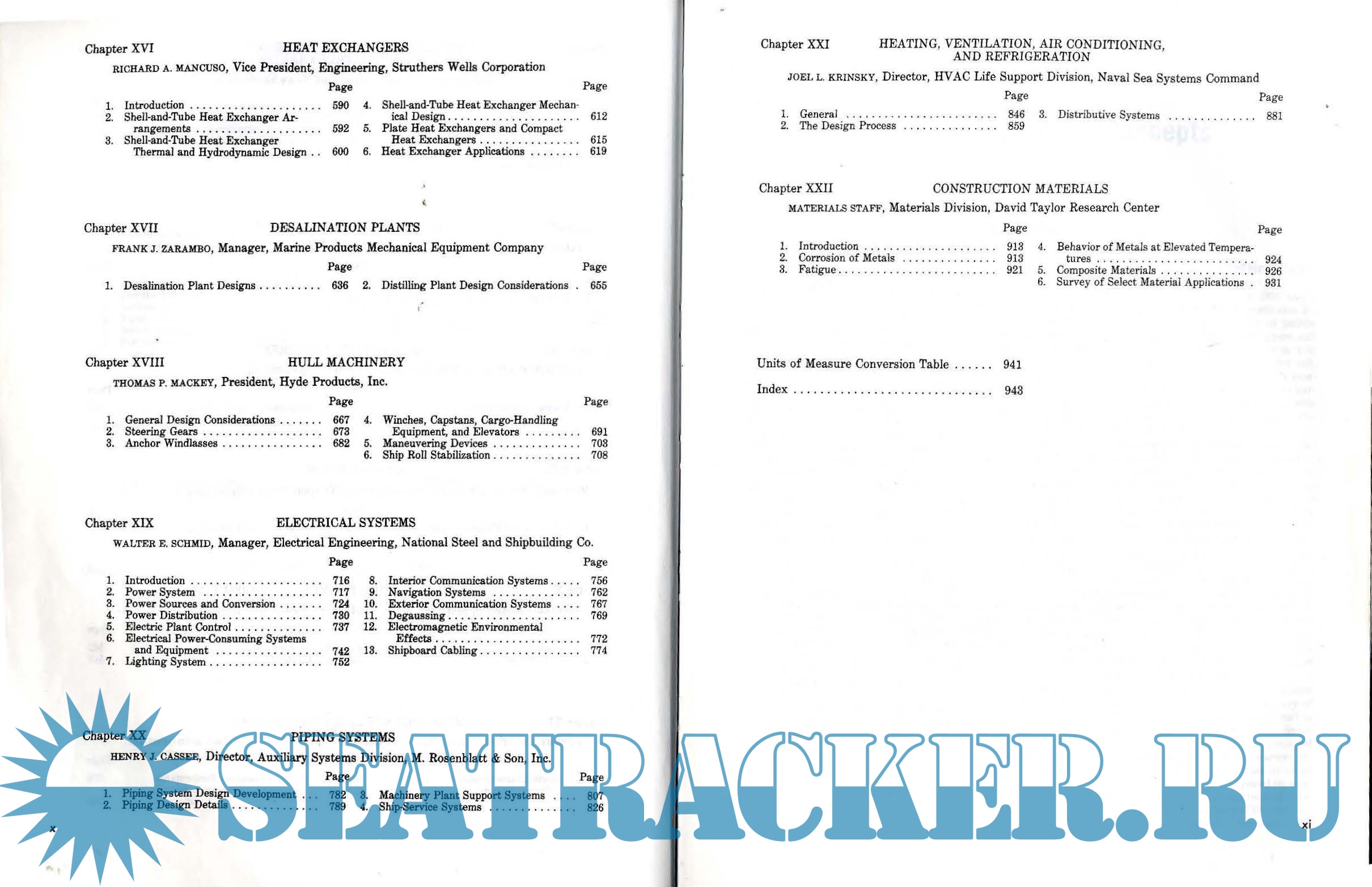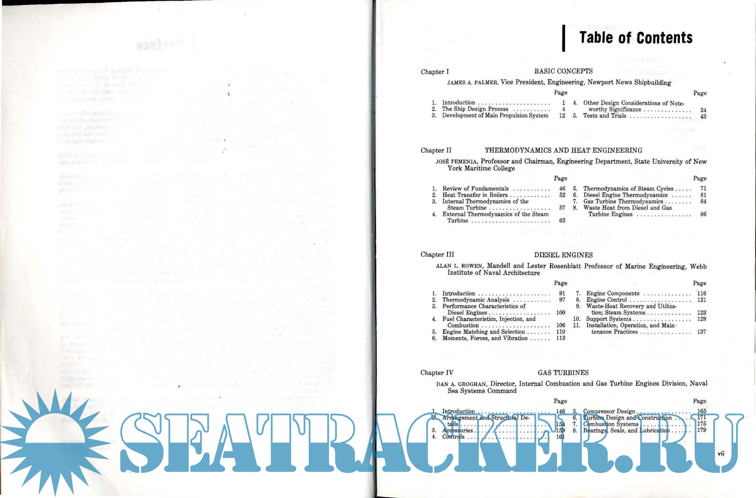 Year: 1992 Language: english Author: Roy L. Harrington Genre: Technical book Publisher: Society of Naval Architects & Marine Engineers Edition: 2nd ISBN: 9780939773107 Format: PDF Quality: OCR without errors Pages count: 967 Description: Most of the changes in this 1992 Edition have been of an evolutionary nature; as examples, diesels have continued to supplant steam turbines for most ship propulsion applications in the commercial arena, and gas turbines have become more firmly established as propulsion engines, particularly for warships of the frigate class. Because of the evolutionary nature of the technology changes, the coverage of some subjects has been reduced in comparison with that in the previous edition (e.g., Boilers and Combustion), but the coverage of other subjects has been expanded substantially. Noise Control, for example, has been given a more thorough treatment; Chapter 13 is dedicated to that subject. In addition, the introductory chapter has been broadened to include several topics, such as Design for Production, that have been given an increased emphasis since publication of the previous edition. The purpose of this second revision remains the same as that for earlier editions, that is, to provide a basic understanding of marine engineering principles to persons who are nominally second-year engineering students.
