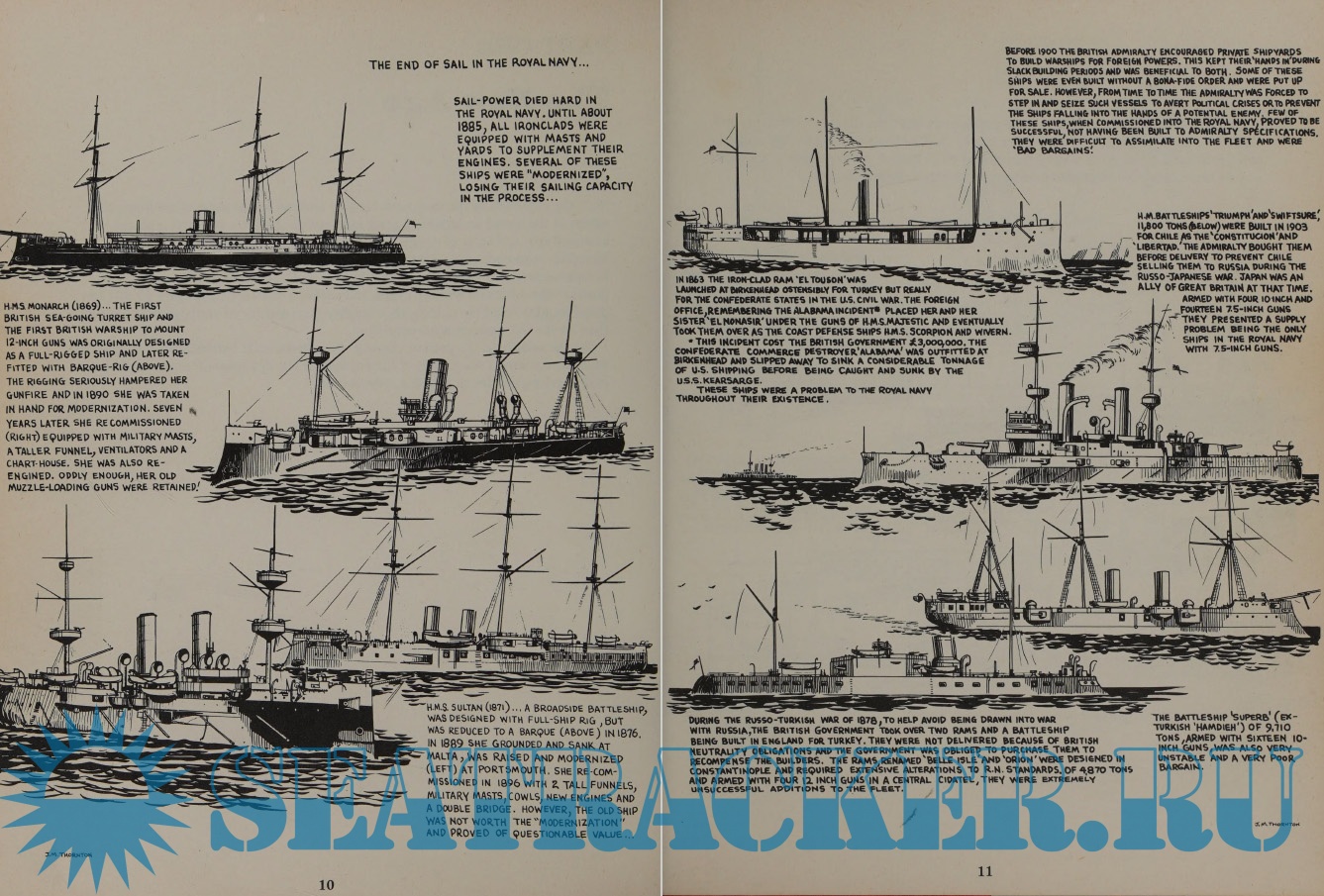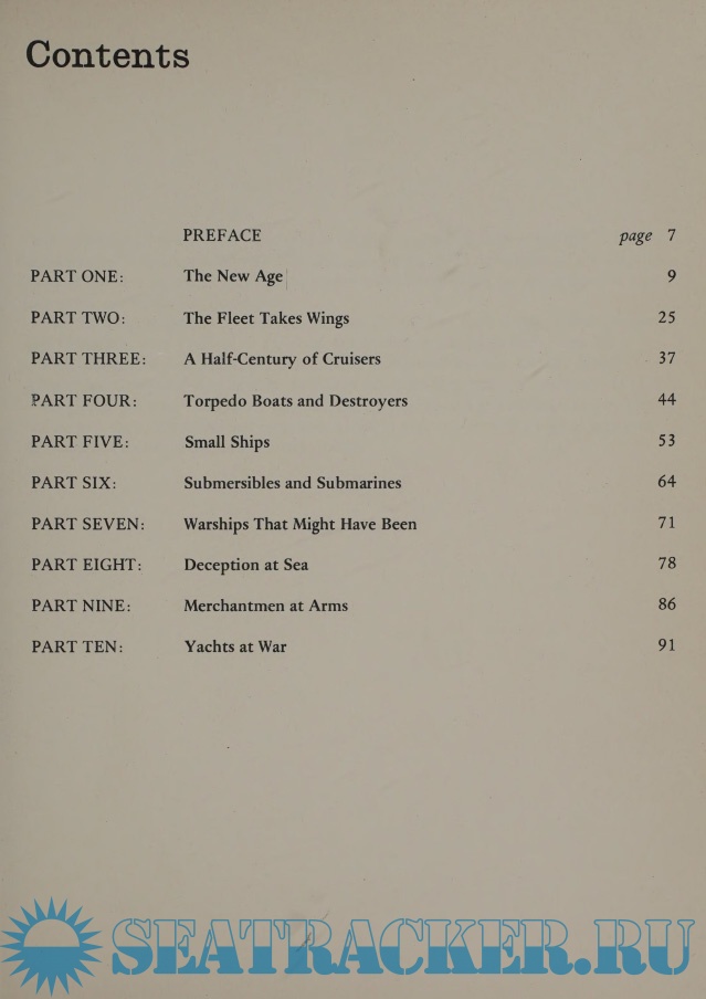 Year: 1973 Language: english Author: J. M Thornton Genre: History Publisher: Arco Pub. Co Format: PDF Quality: Scanned pages Pages count: 102 Description: In this compendium, the development of th e warship over nearly a century is highlighted in a fascinating series of informal line drawings. Many curiosities are featured as subjects suchas ships that might have been, deception at sea, merchantmen at arms, wars hips in 'retirement' and vessels that switched colours." - dj. "The drawings originally appeared in the Royal Canadian Navy's now defunct magazine Crowsnest over a period of 15 years." - preface. Parts : 1. The New Age; 2. The Fleet Takes Wings; 3. A Half-Century of Cruisers; 4. Torpedo Boats and Destroyers; 5. Small Ships; 6. Submersibles and Submarines; 7. Warships That Might Have Been; 8. Deception at Sea; 9. Merchantmen at Arms; 10. Yachts atWar.