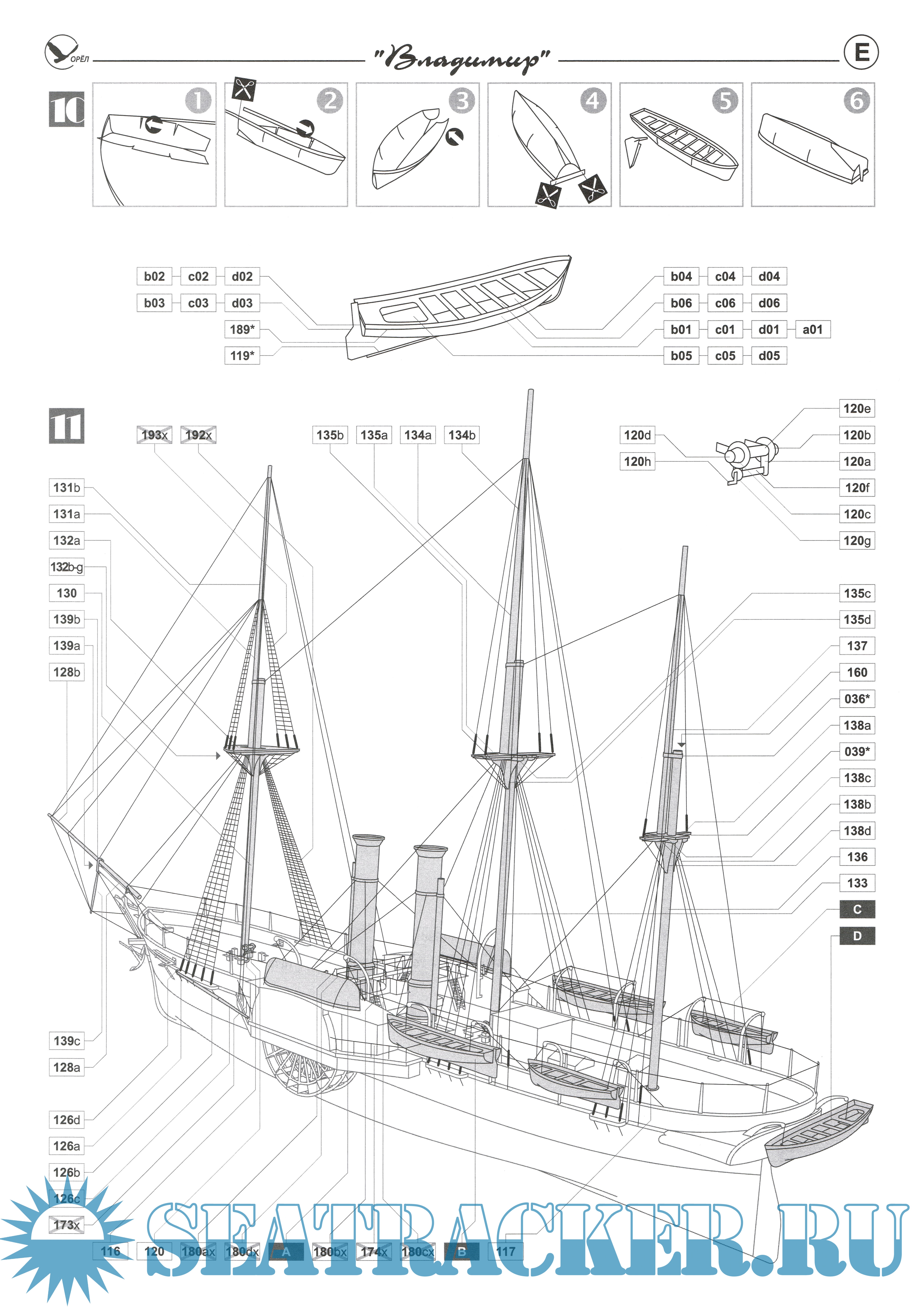 28 листов цветных выкроек и описаний для создания бумажной модели пароходофрегата "Владимир" 1850 год в масштабе 1:200