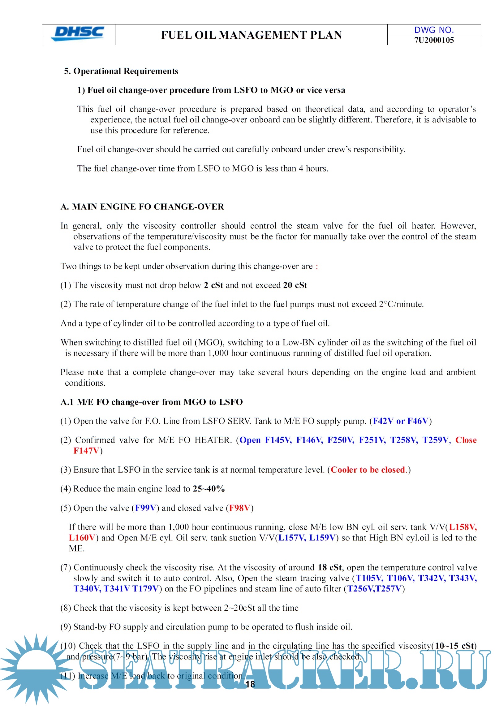 В этой инструкции вы найдете полную информацию по процедуре перехода с одного сорта топлива на другое. Рекомендации завода изготовителя MAN B&W и KangRim, а так же сервисные письма ,схемы и диаграммы включены для наилучшего понимания этой темы .