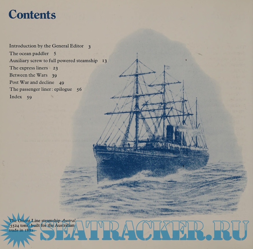 Description: An account of the development of passenger ships from 1850 to 1970from wooden-hulled paddlesteamers augmented with full outfit of sails to the screw propeller, iron hull and compound engine.
