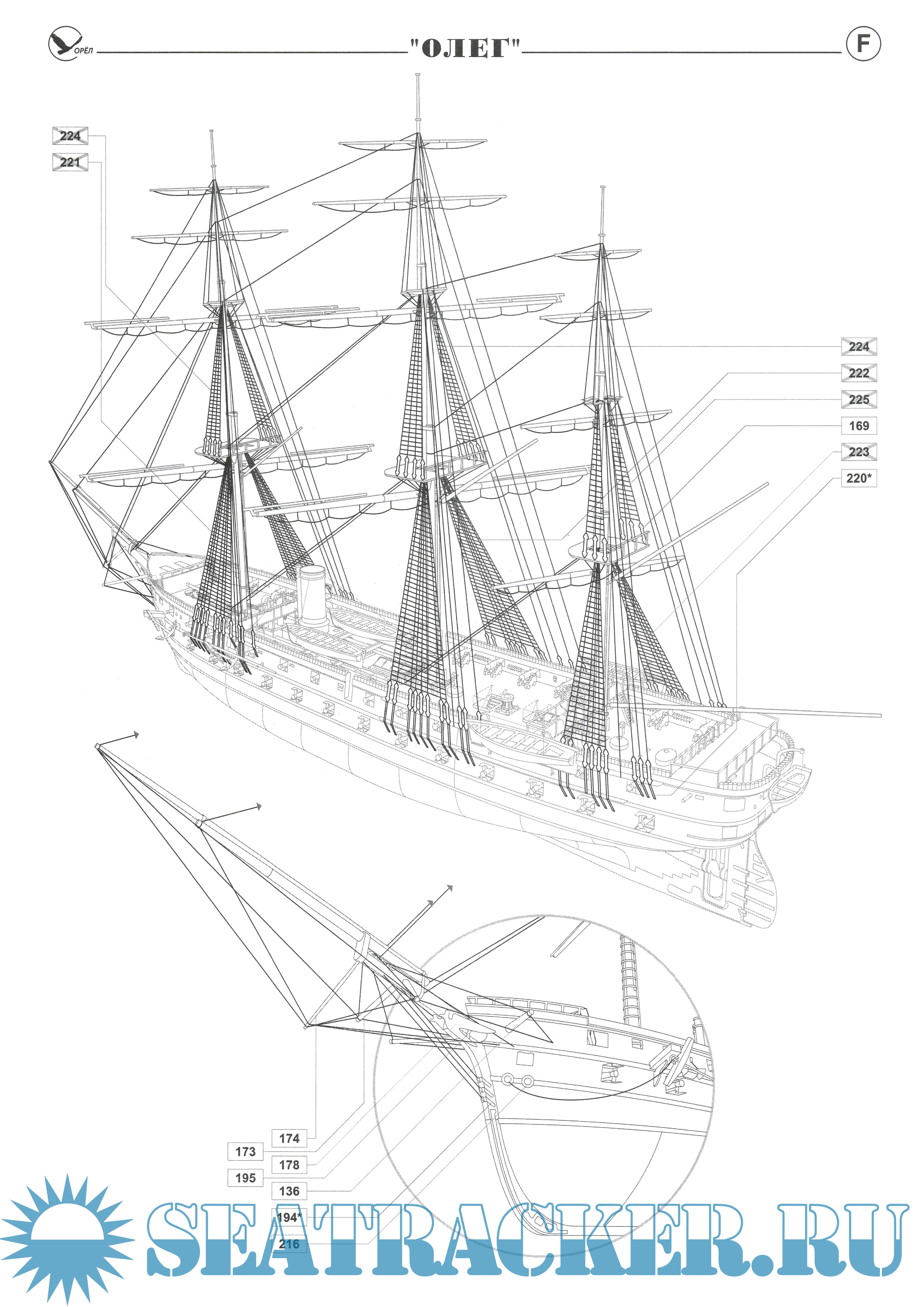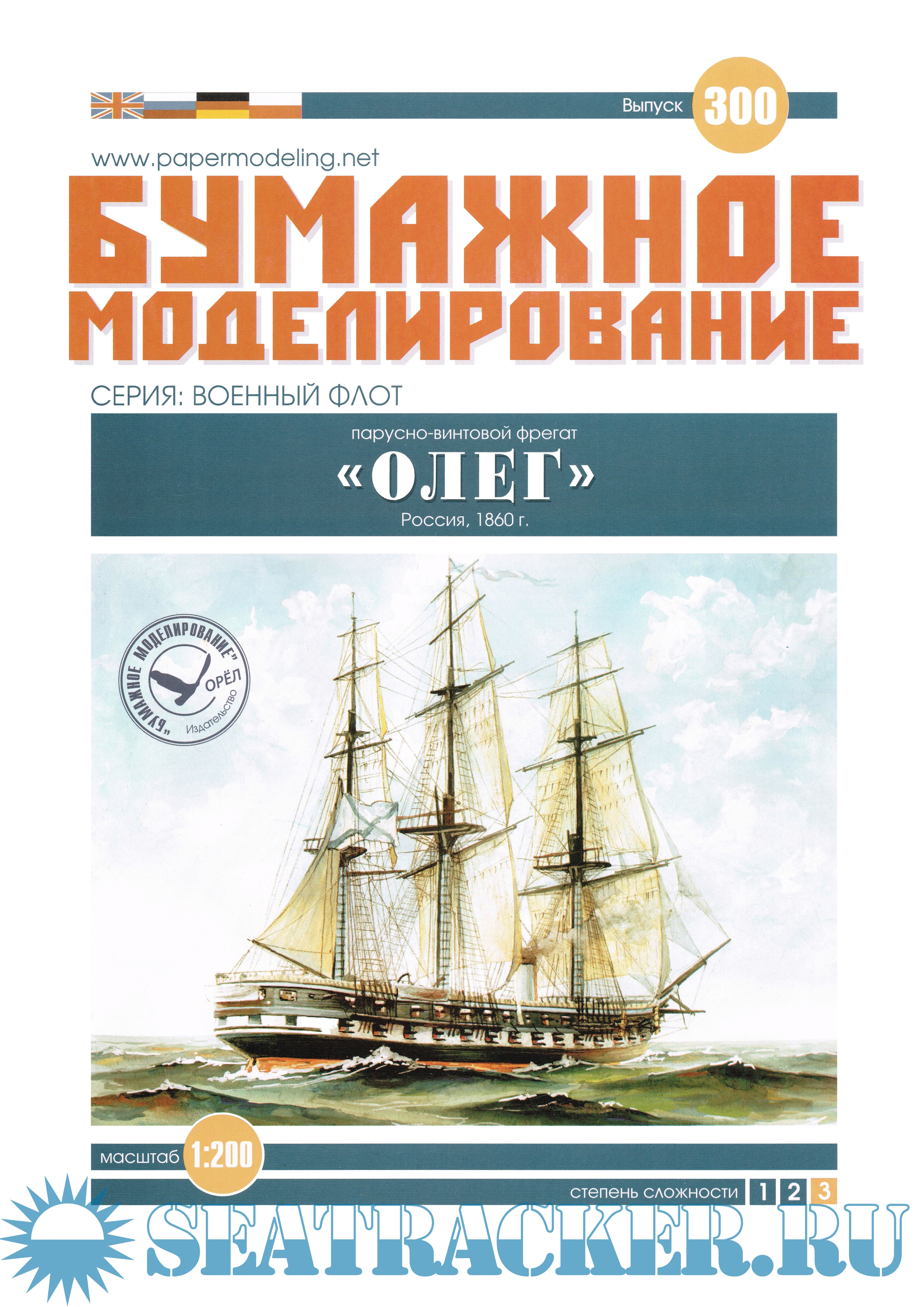38 листов цветных выкроек и описаний для создания бумажной модели парусно-винтового фрегата Олег 1860 год в масштабе 1:200