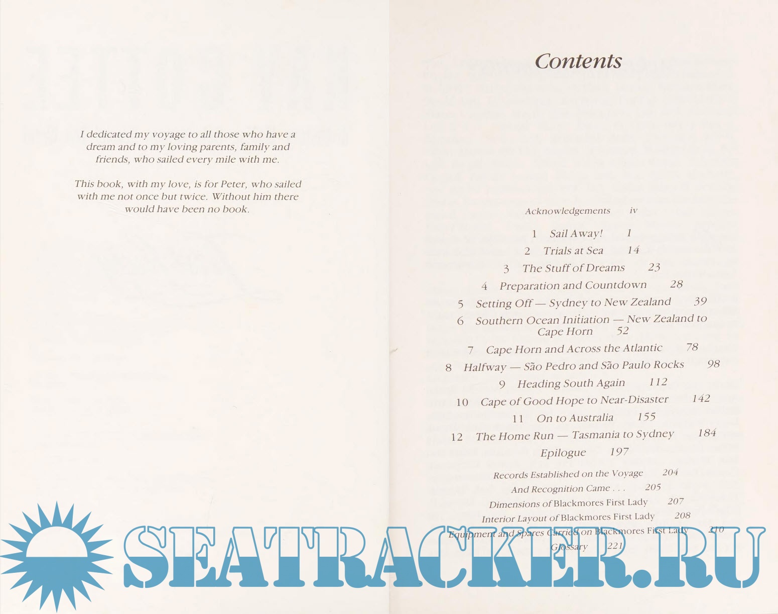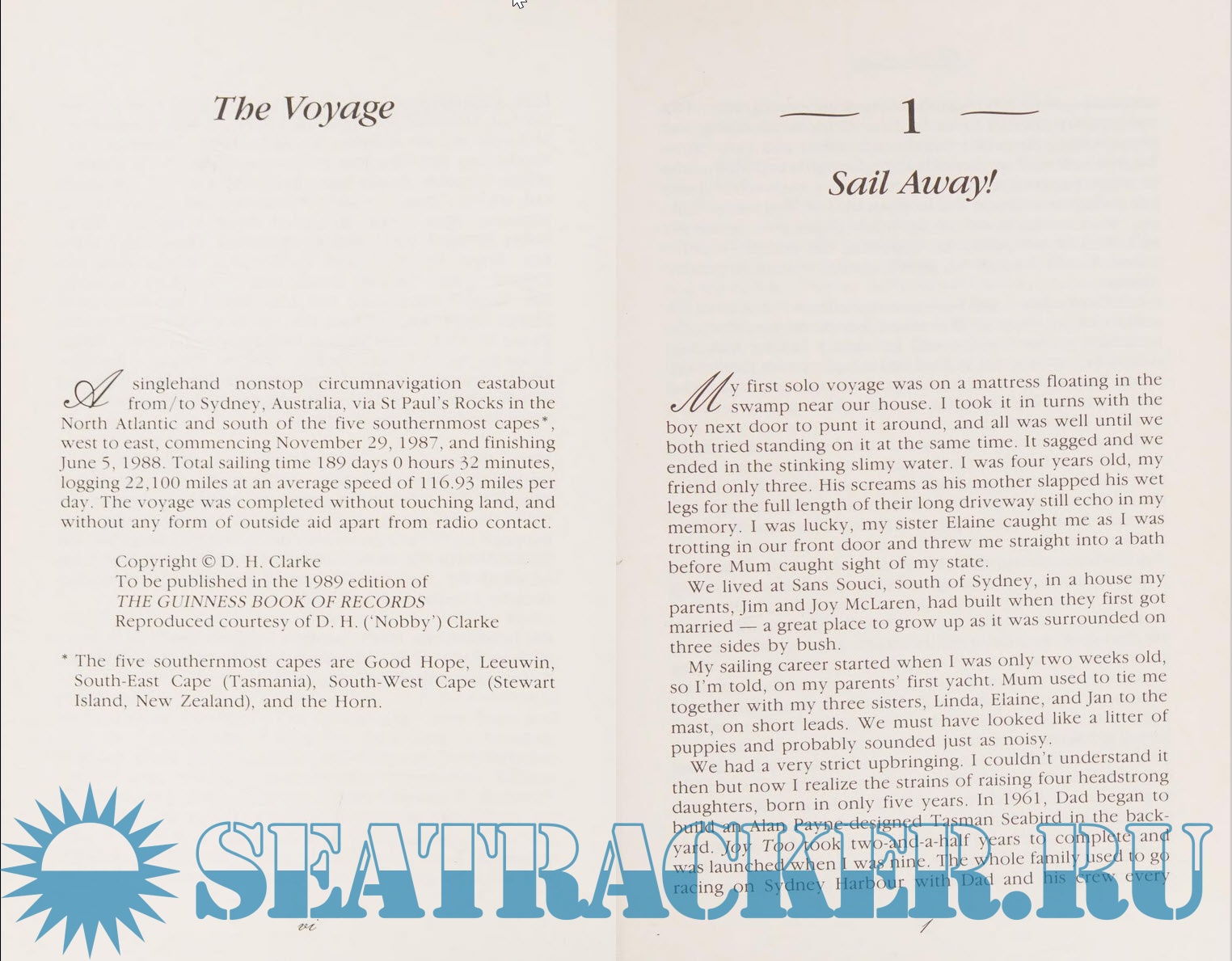 Description: Fascinating and very honest account of one woman's struggle against the Weather odds to achieve her ambition to sail around the world the hard way. It is not a "piece of literature" , but is quite well written. She is a mighty woman/person----as good as any male sailors ! and it is fascinating how she handles the pressure, the loneliness----- completely on her own in the worst weather conditions on the planet. At various stages I feared for her life, but she came through with flying colours.