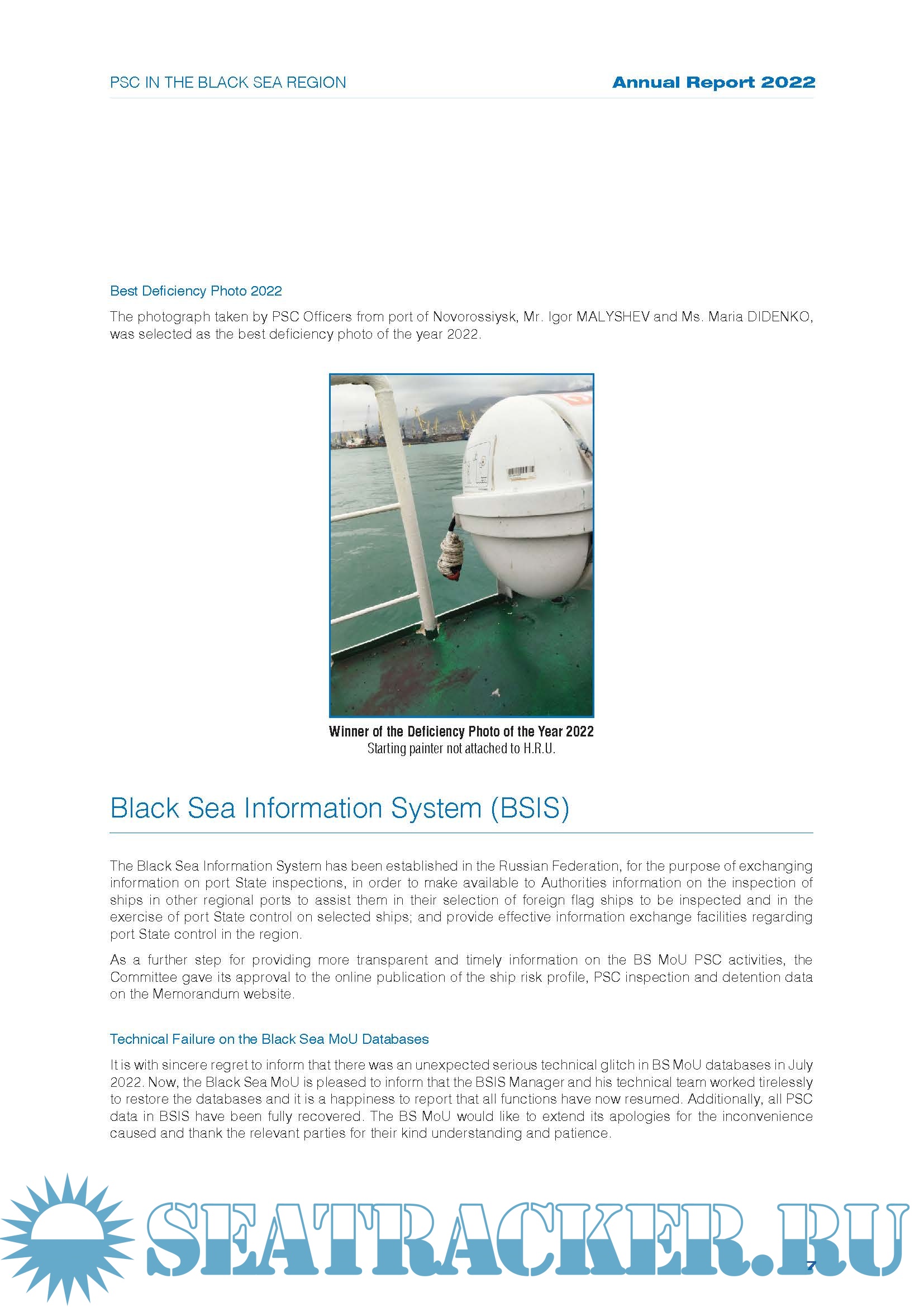 Description: This annual report outlines recent activities on port State control in the Black Sea region,as well as international perspectives on port State control and includes the statistical port State inspectiondata conducted by the member Authorities of the BS MoU during the year 2022.