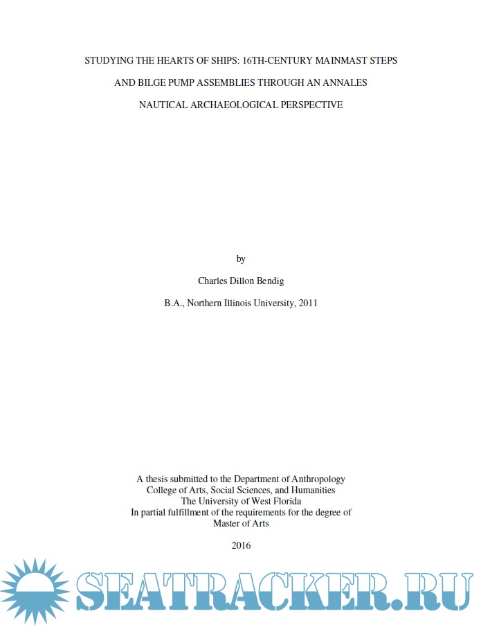 Description: Over the past 30 years numerous archaeological investigations have revealed several 16th-century shipwrecks in various states of preservation. Many of these include evidence for the mainmast step and, occasionally, remaining vestiges of the bilge pump assemblies. Surviving mainmast steps allow archaeologists to create datasets to understand specific timeframes for shipbuilding methodology. Previous research is often focused on frame construction and the features related to regional shipbuilding traditions that led to cross-oceanic travel. Archaeologists need to reevaluate their methodology by applying the French annales approach, which attempts to understand the multi-layer trends and fluctuations throughout history, including between the archaeological record and the historical events that encapsulate shipbuilding modifications. This thesis also outlines methodology in conducting in-situ analysis on the central-internal hull of the Emanuel Point II (EP II) shipwreck. Results from this study connect not only to the ill-fated Tristán de Luna y Arellano expedition of 1559, which EP II was once part of, but also trends in technological developments, as revealed in the archaeological record, on central internal hull construction. Nautical archaeologists can benefit using a multi-tiered analysis to reveal shipbuilding trends as concerns mainmast step and bilge pump assembly.
