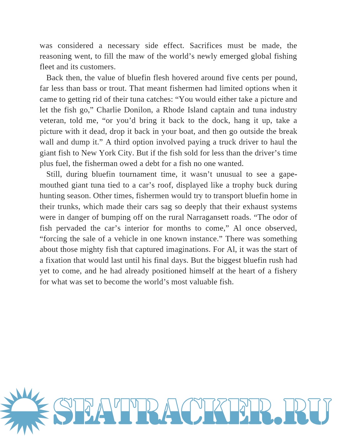 Over his fishing career Al marked more than sixty thousand fish with plastic tags, an obsession that made him nearly as many enemies as it did friends. His quest landed him in the crossfire of an ongoing fight between a booming bluefin tuna industry and desperate conservation efforts, a conflict that is once again heating up as overfishing and climate change threaten the fish’s fate.