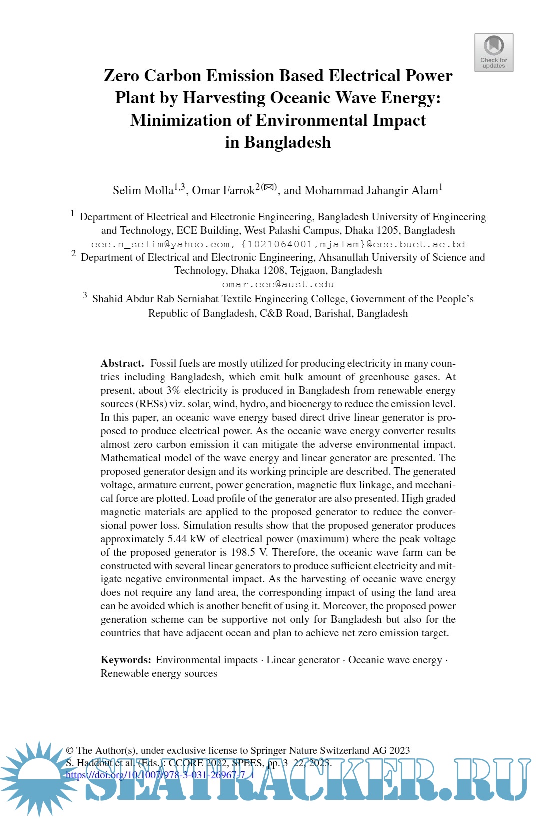 Description: One of the main objectives of this book is to present selected papers from the 1st International Conference on Climate Change and Ocean Renewable Energy (CCORE-2022), which focuses on climate change and ocean renewable energy research.