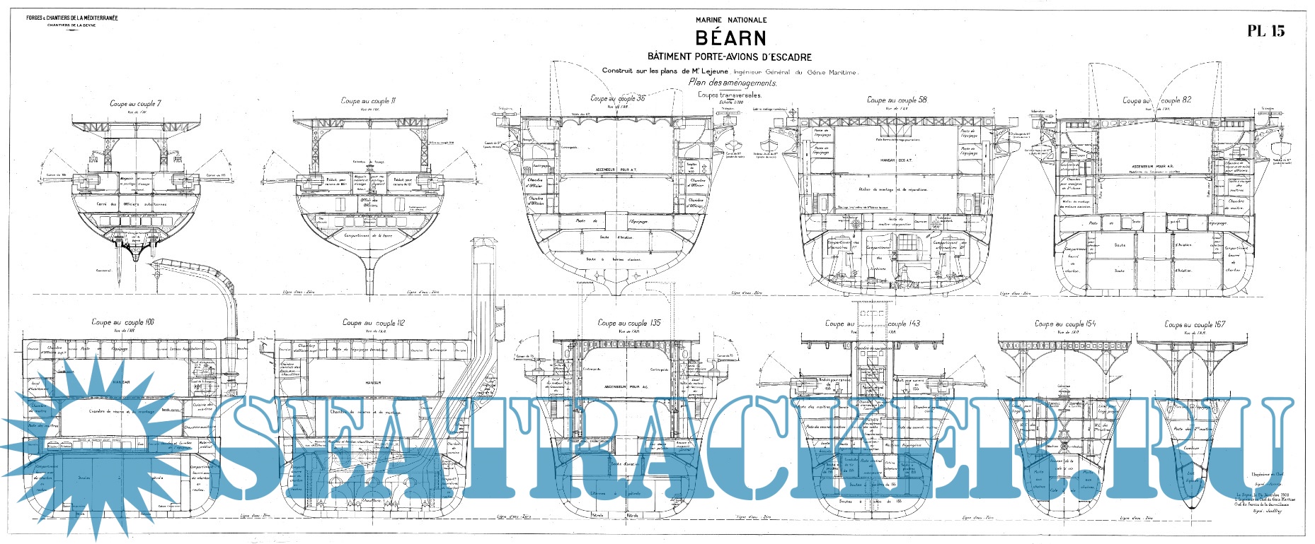 Архивные чертежи французского авианосца BEARN 1927 год