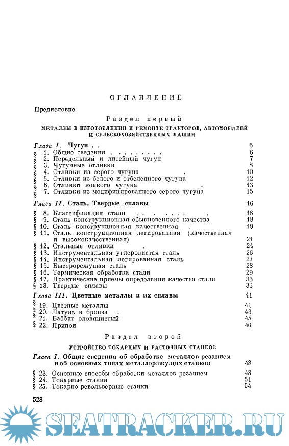Год выпуска: 1958 Язык: русский Автор: С.В.Ятченко Жанр: Учебное пособие Издательство: Сельхозгиз Формат: PDF Качество: Отсканированные страницы Количество страниц: 536 Описание: В книге приведены сведения об основных материалах, применяемых при изготовлении и восстановлении деталей тракторов, автомобилей, комбайнов и других сельскохозяйственных машин; описано устройство токарных станков и работа на них; даны основные сведения об устройстве и работе расточных станков; рассмотрены основные вопросы процесса резания металлов, допусков и измерений; изложены способы скоростного резания и методы работы токарей-скоростников.