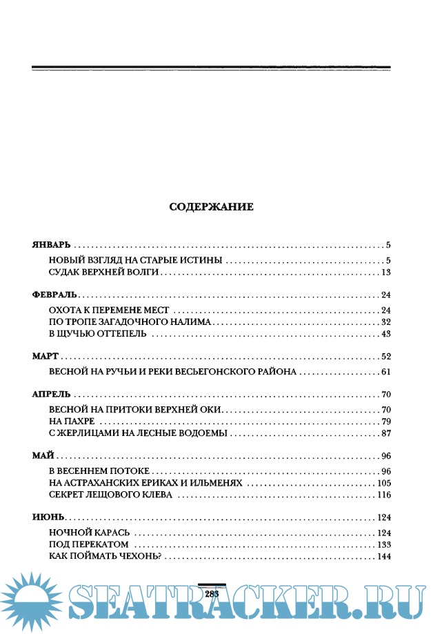 Структура книги подчинена идее выделять в каждом месяце именно ту рыбу, которую с успехом можно в это время поймать, причем автор советует применить для каждого вида определенную снасть.