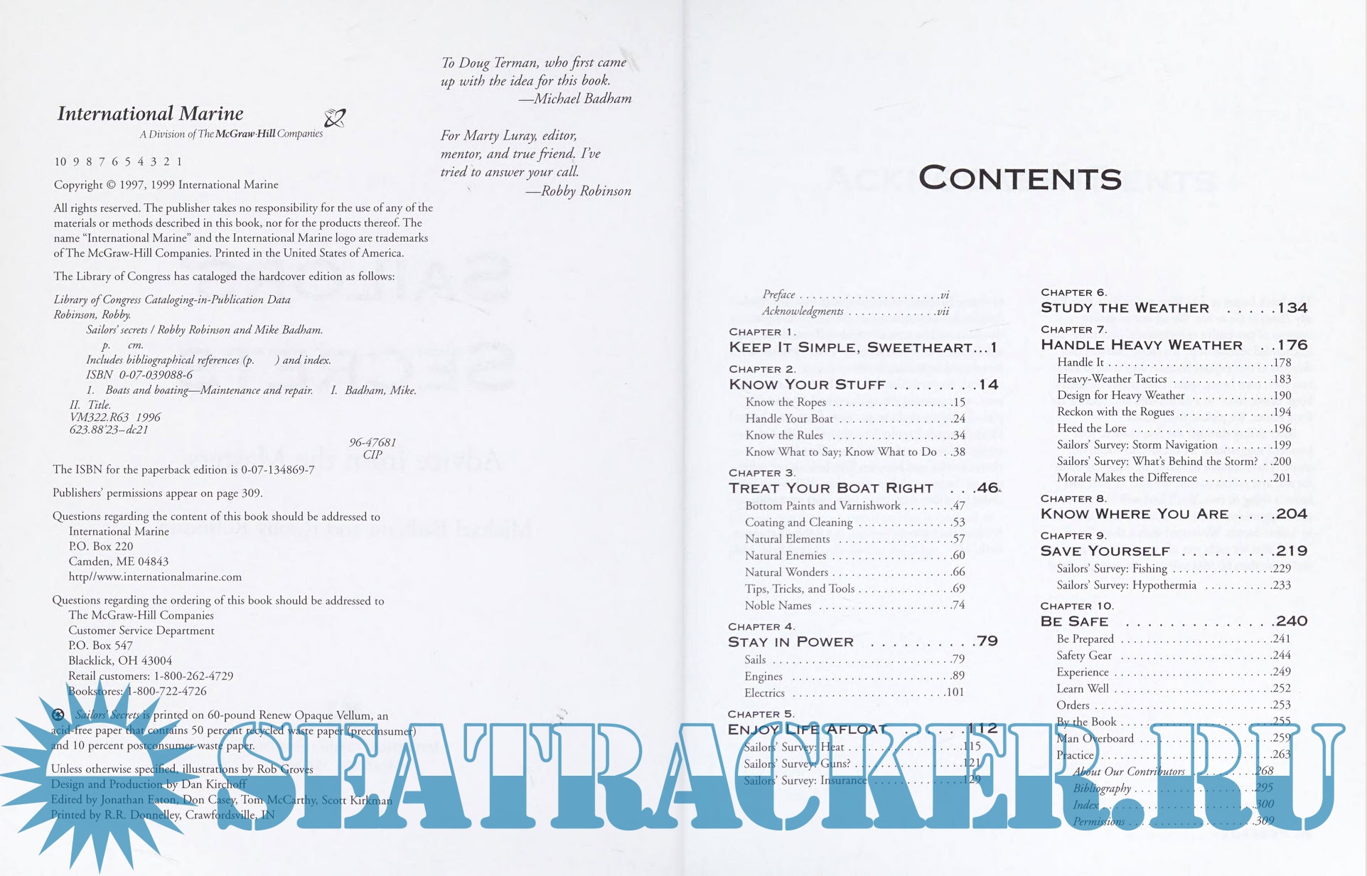 Description: With pithy, often iconoclastic advice on all aspects of seamanship and boat maintenance, Badham and Robinson have distilled in this book the seagoing experience of hundreds of the world's sailing experts. The result is the nautical equivalent of an experts' forum, including instructive and sometimes humorous and sometimes biting advice on: boat maintenance; understanding weather; safety at sea and storm strategies; gear and outfitting; sailing well; piloting; engine troubleshooting; simple solutions to complex problems. From Meade Gougeon on maintaing your boat to Buddy Melges on sailing it well, Walter Greene on taking it to sea, and Steve Callahan on coming home again, the insights shared here were developed over millions of sea miles.