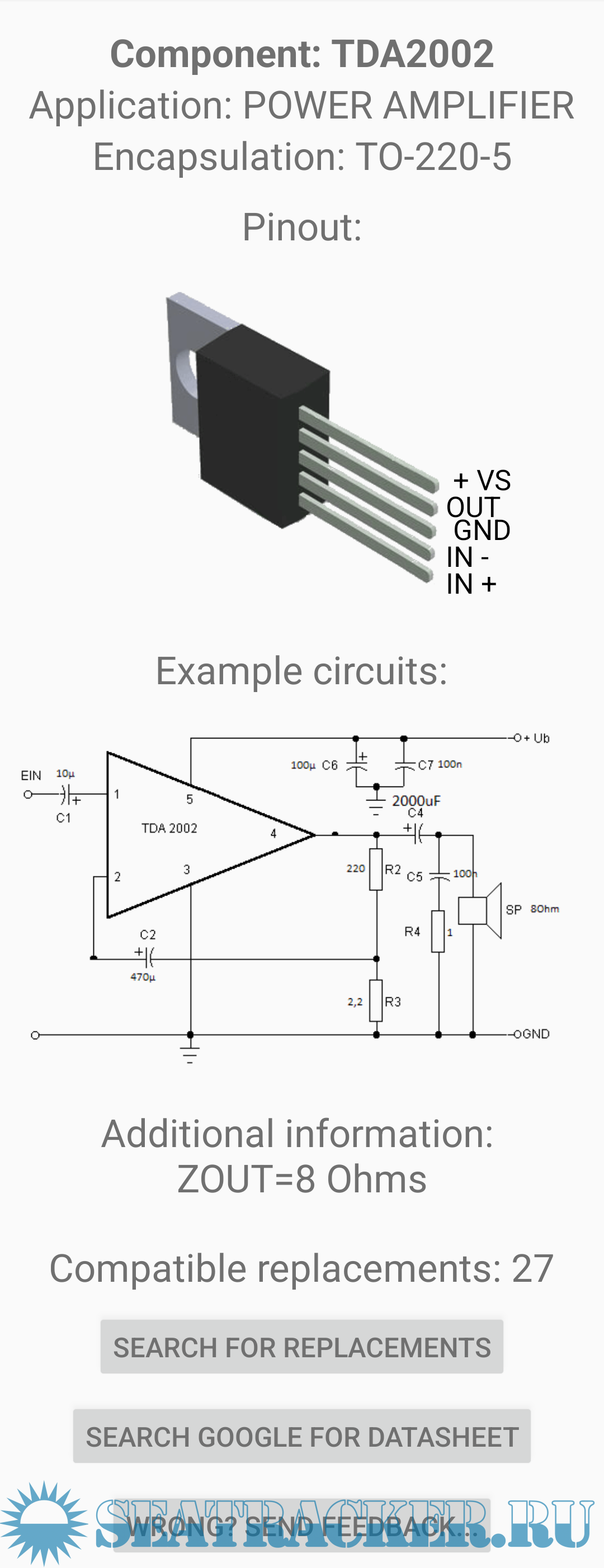 Description: This application provides an offline database with more than 80000 electronic component pinouts. Chips, Transistors, Diodes, Triacs, Microprocessors, and much more.