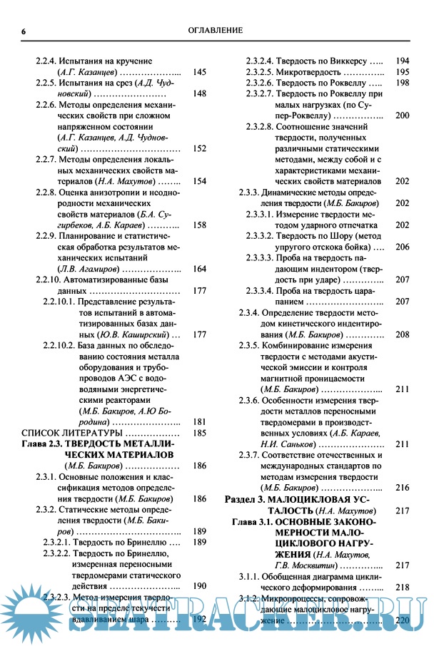 Описание: Приведены методы и средства определения химического состава и исследования структуры металлических материалов, методы и средства испытаний для определения основных физико-механических свойств при различных видах нагружения, характеристик малоцикловой усталости, многоцикловой усталости, термической прочности, коррозионно-механической прочности и трещиностойкости. Рассмотрено строение изломов при разных видах нагружения и в условиях длительного воздействия статических нагрузок.