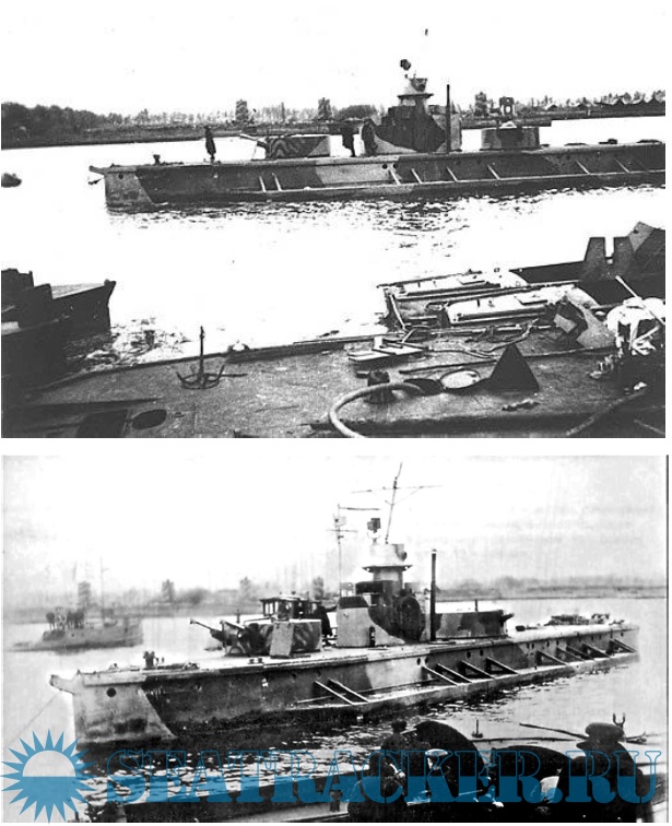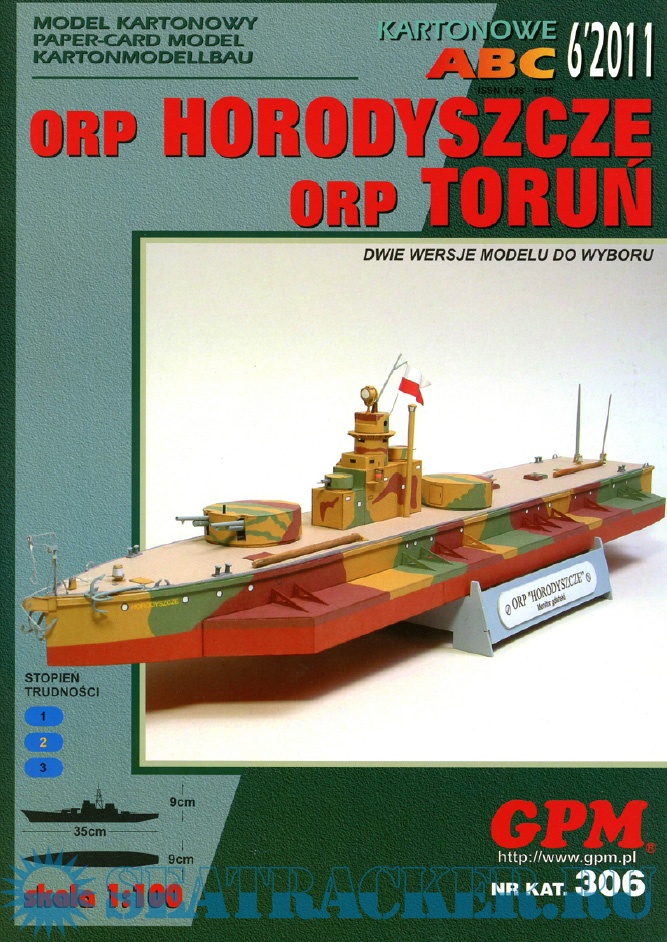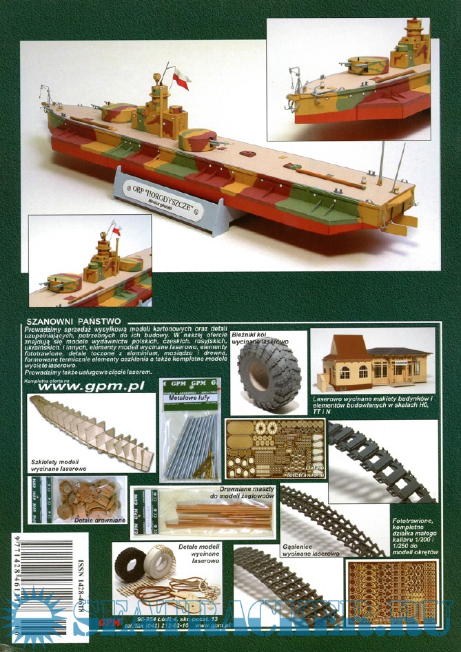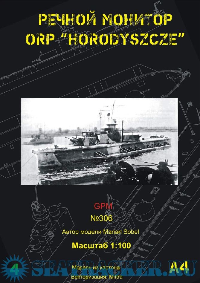 Описание: 20 листов цветных выкроек и инструкций (перекрашенные и реставрированные) для создания бумажной модели речного монитора ORP Horodyszce / Бобруйск в масштабе 1:100