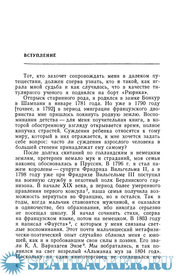 Описание: Автор - выдающийся немецкий писатель и естествоиспытатель - рассказывает о кругосветном плавании на борту русского брига «Рюрик» (1815-1818) под командованием капитана О. Коцебу. В своих путевых заметках он подробно описывает нравы и обычаи коренных жителей островов Тихого океана, рассказывает о встречах на Камчатке, Аляске, Алеутских, Сандвичевых и других островах. В яркой художественной форме он рисует картины повседневной жизни экспедиции, героическую борьбу с трудностями ее участников.