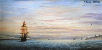 Описание: Владимир Косов, родившись на благодатной земле юга России, с детства ощутил величие морской стихии. И как любой, в ком проявилась Божья искра творческого начала, стремится воплотить постигшее его озарение в каждой своей живописной работе.