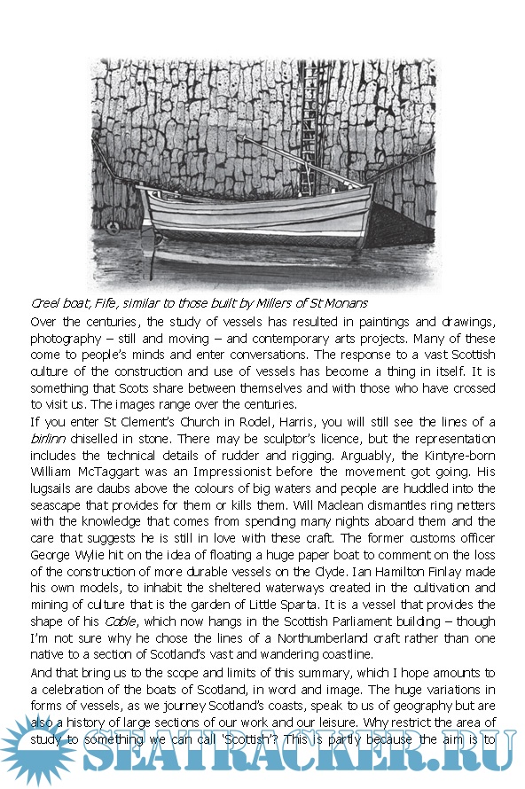 Year: 2023 Language: english Author: Ian Stephen Genre: Handbook Format: EPUB Quality: eBook Pages count: 231 Description: People are drawn to the harbours and boats of Scotland whether they have a seafaring background or not. Why do boats take on different shapes as you follow the complex shorelines of islands and mainland? And why do the sails they carry appear to be so many shapes and sizes? Then there are rowing craft or power-driven vessels which can also be considered ‘classics’, whether they were built for work or leisure. As he traces the iconic forms of a selection of the boats of Scotland, Ian Stephen outlines the purposes of craft, past and present, to help gain a true understanding of this vital part of our culture. Sea conditions likely to be met and coastal geography are other factors behind the designs of a wide variety of craft. Stories go with boats. The vessels are not seen as bare artefacts without their own soul but more like living things.