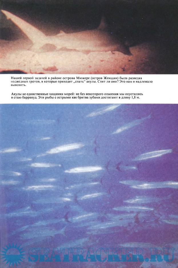 Экипажем "Калипсо" были предприняты многочисленные погружения в районе Карибского моря для выяснения поведения акул - этих страшных хищников моря.