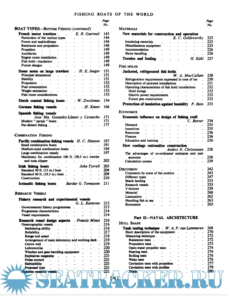 Year: 1975 Language: english Author: Jan Olof Traung Genre: Technical book Publisher: Fishing News Books Limited Format: PDF Quality: Scanned pages Pages count: 607 Description: This is the first of three volumes, covering types of boats for various fishing methods, combined fishing and research vessels, marine architecture with regard to hull shape and safety at sea, engines, propulsion systems, control devices and deck equipment, factory vessels. The books are based on the International Fishing Boat Congress of the Food and Agriculture Organization in Paris and Miami.